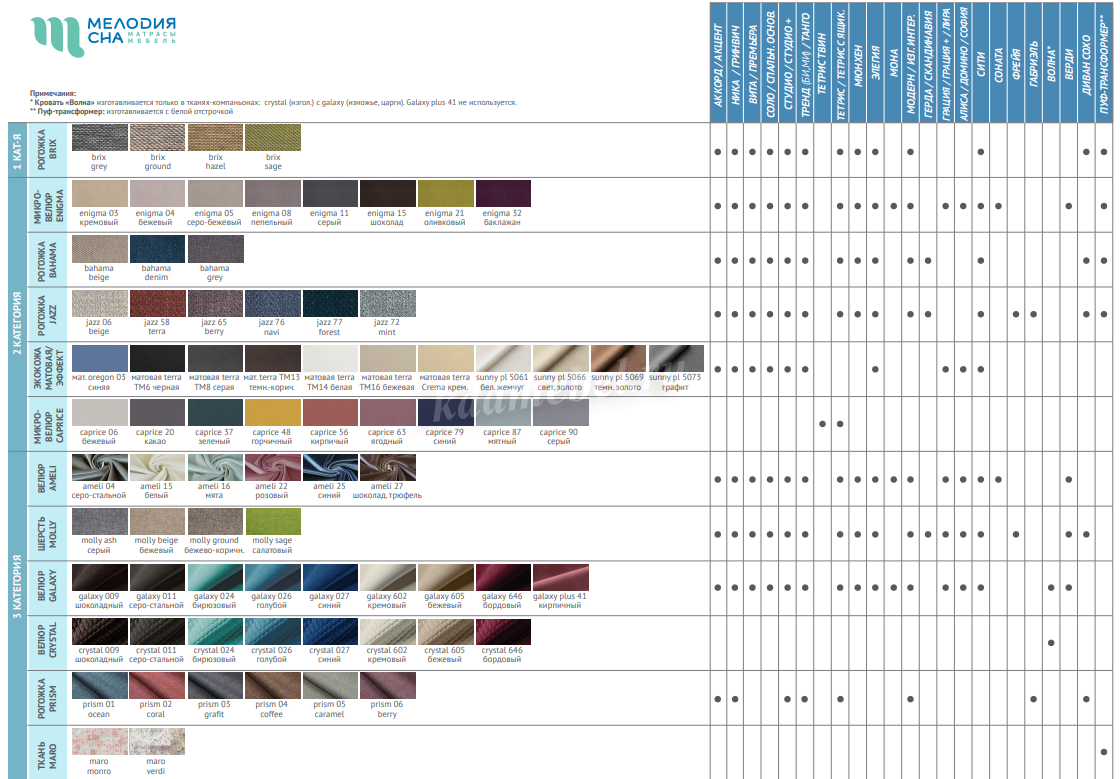 Расцветки можно выбрать из вариантов представленных на дополнительных фотографиях. Возможно исполнение в материалах Рогожка Brix, Bahama, Jazz Микровелюр, Ткань Maro. Подробности уточняйте у менеджера