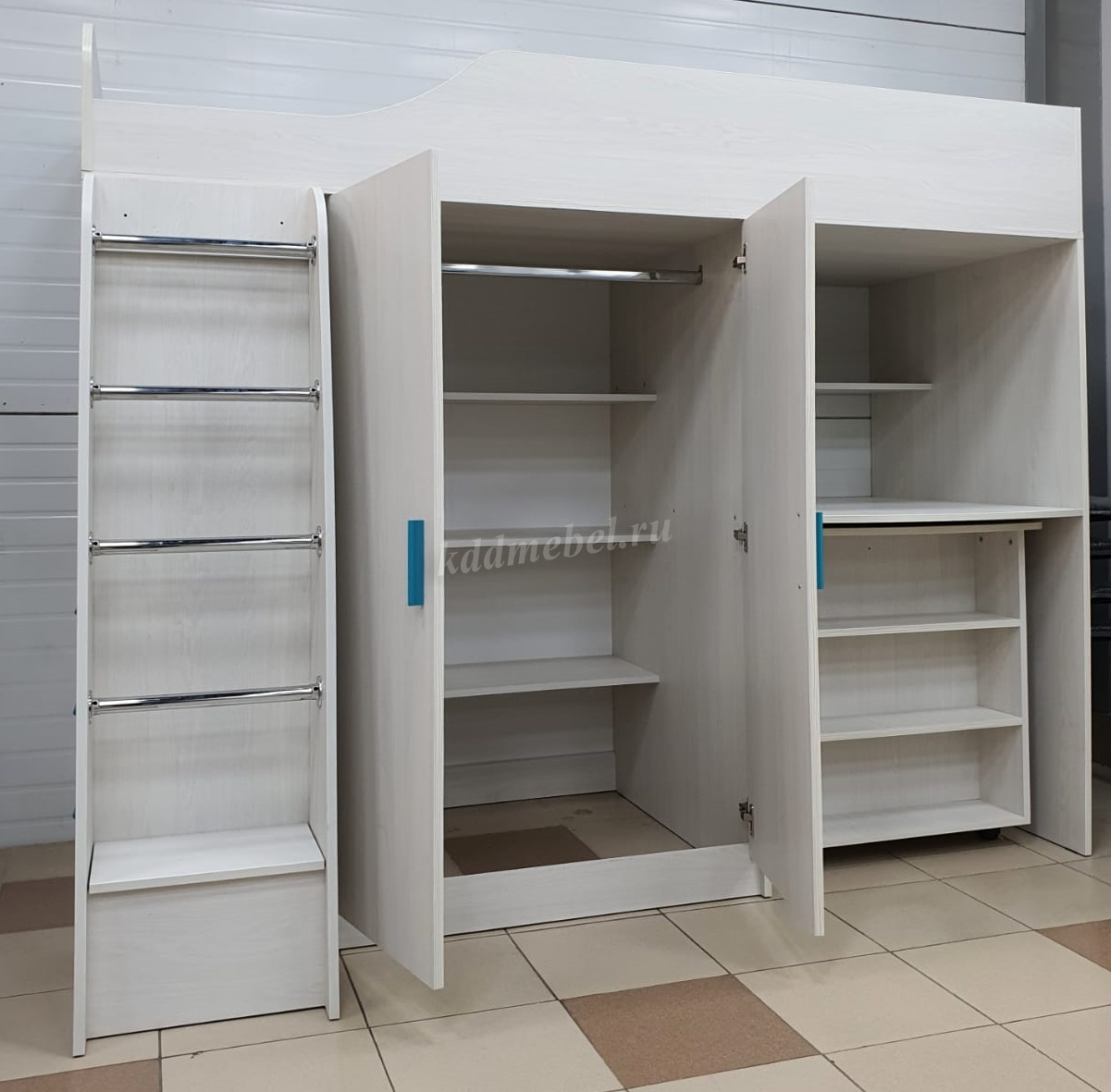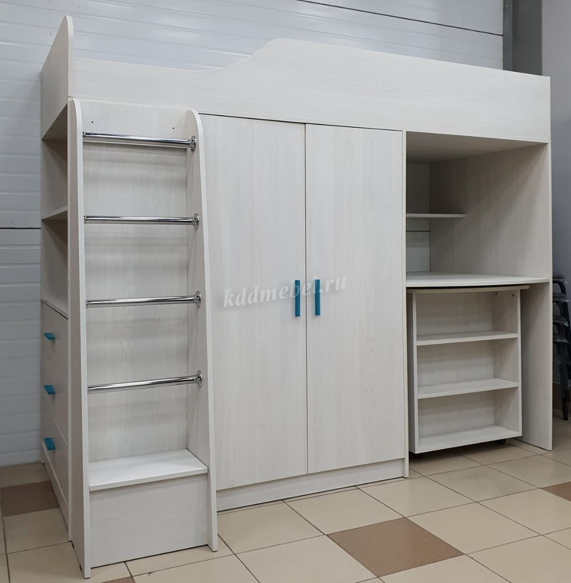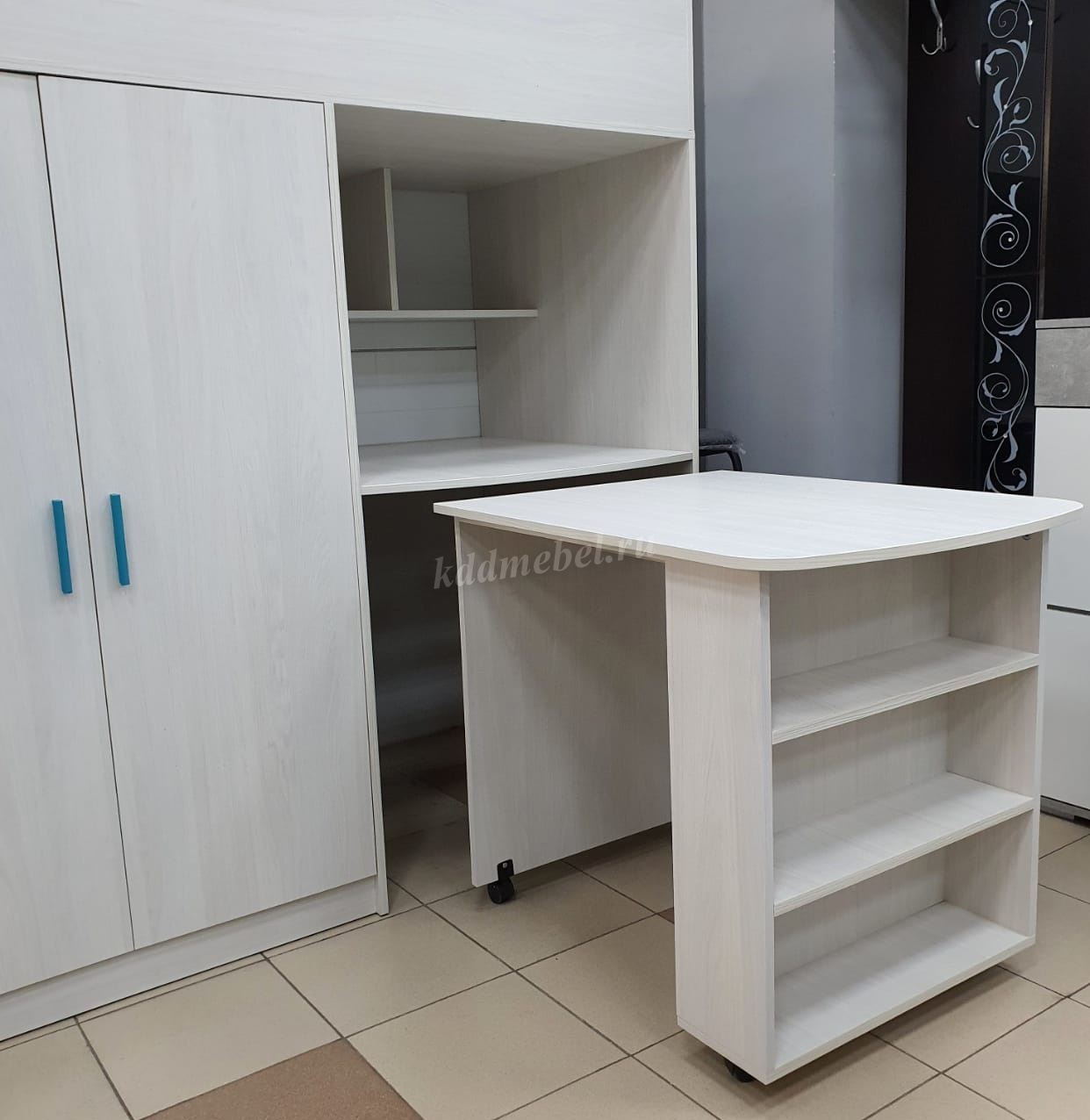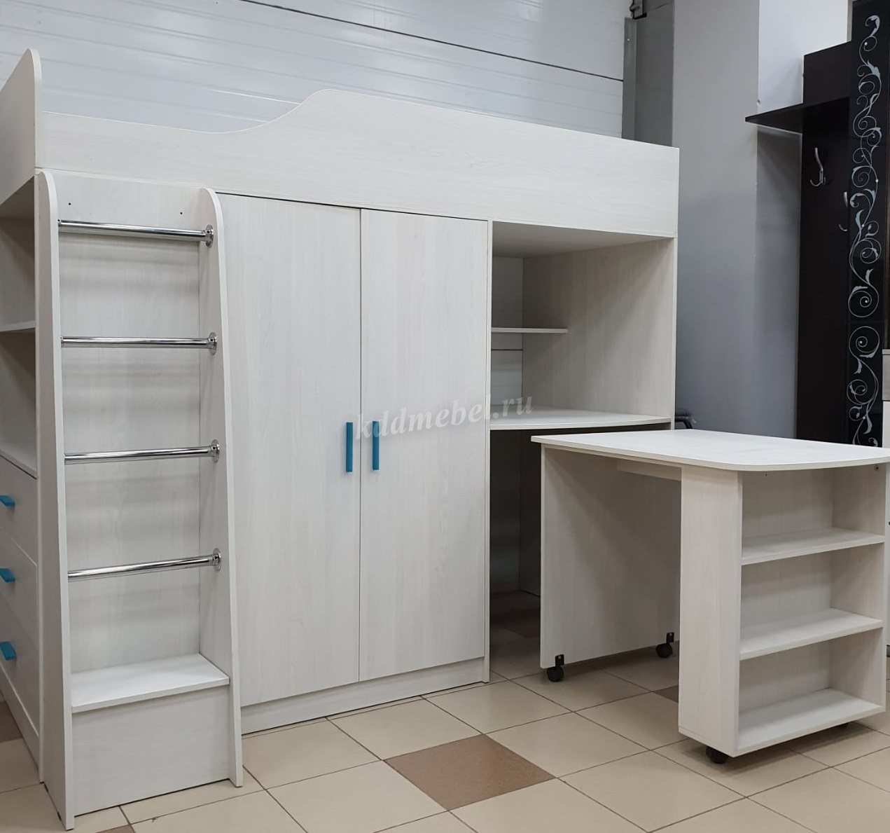 Кровать-чердак Каприз-8 с выкатным столом (Анкор белый) наличие товара:
