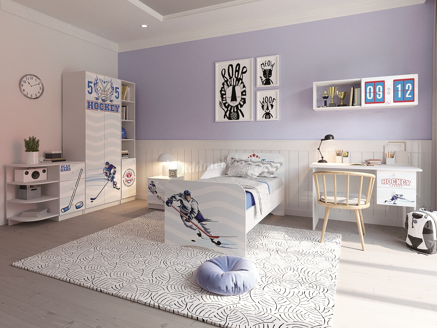Кровать Смарти (Белый/Фотопечать Хоккей)