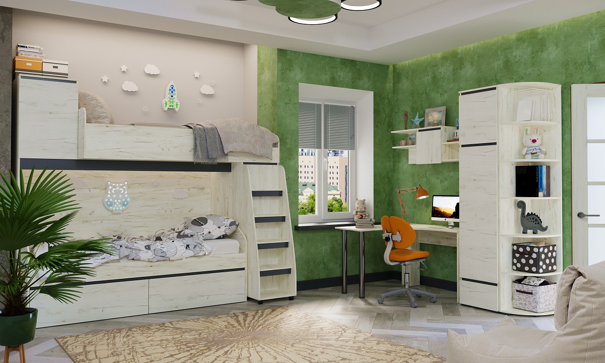 Модульная детская Гретта (Дуб крафт белый/Антрацит)