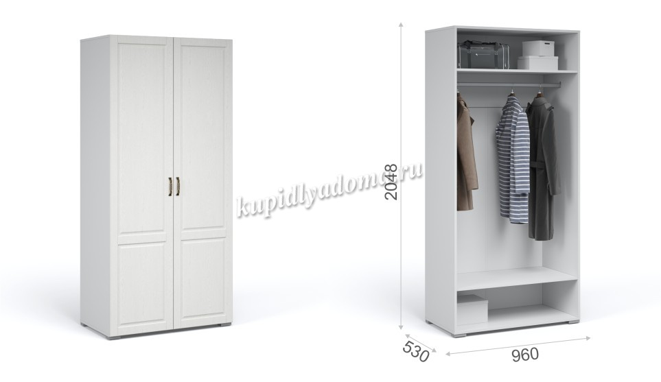 Описание Шкаф 2-х дверный Лацио (Белый/Белое дерево)