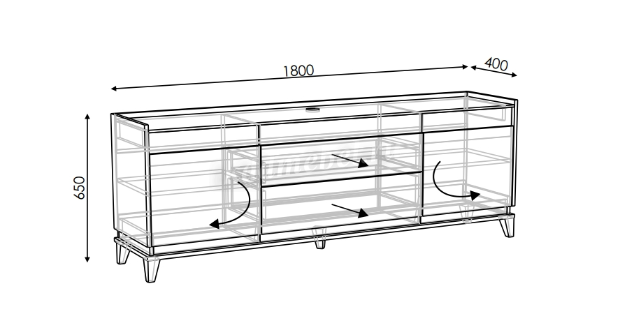комплектация гостиной с вместительной тумбой для телевизоров с диагональною до 75 дюймов.