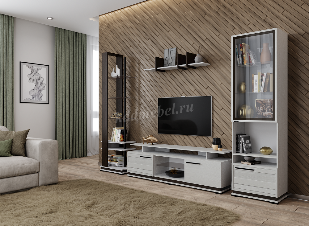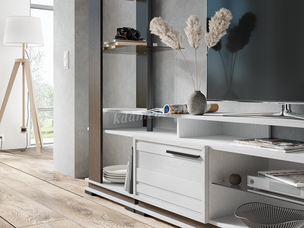 ширины. Использование стеклянных полок в стеллаже, тумбах для ТВ-техники и
