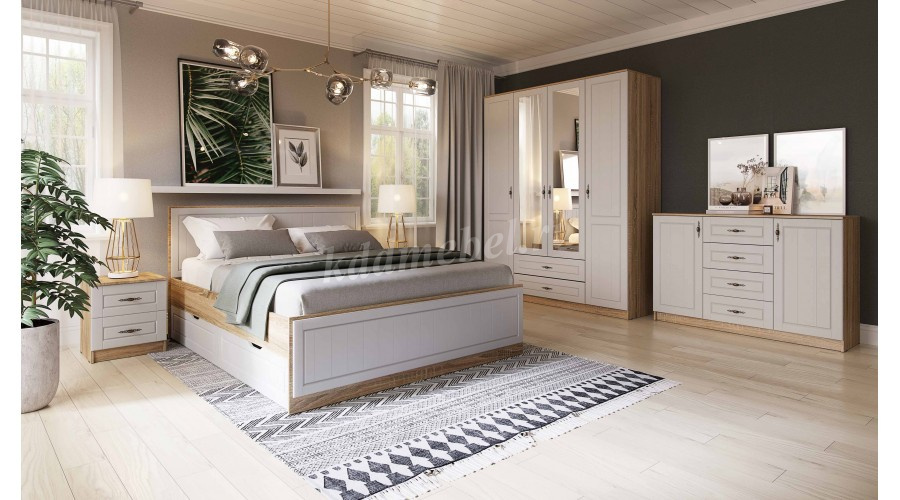 Шкаф Виктория 4-х створчатый (Дуб сонома/Белое дерево)