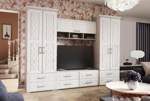 Описание Гостиная Британика комплектация 3 без карниза (Дуб Атланта/Брашированный)