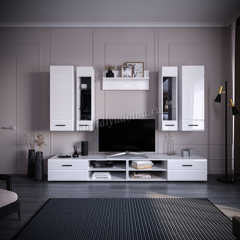 Гостиная Кай (Белый/Белый глянец) наличие товара: