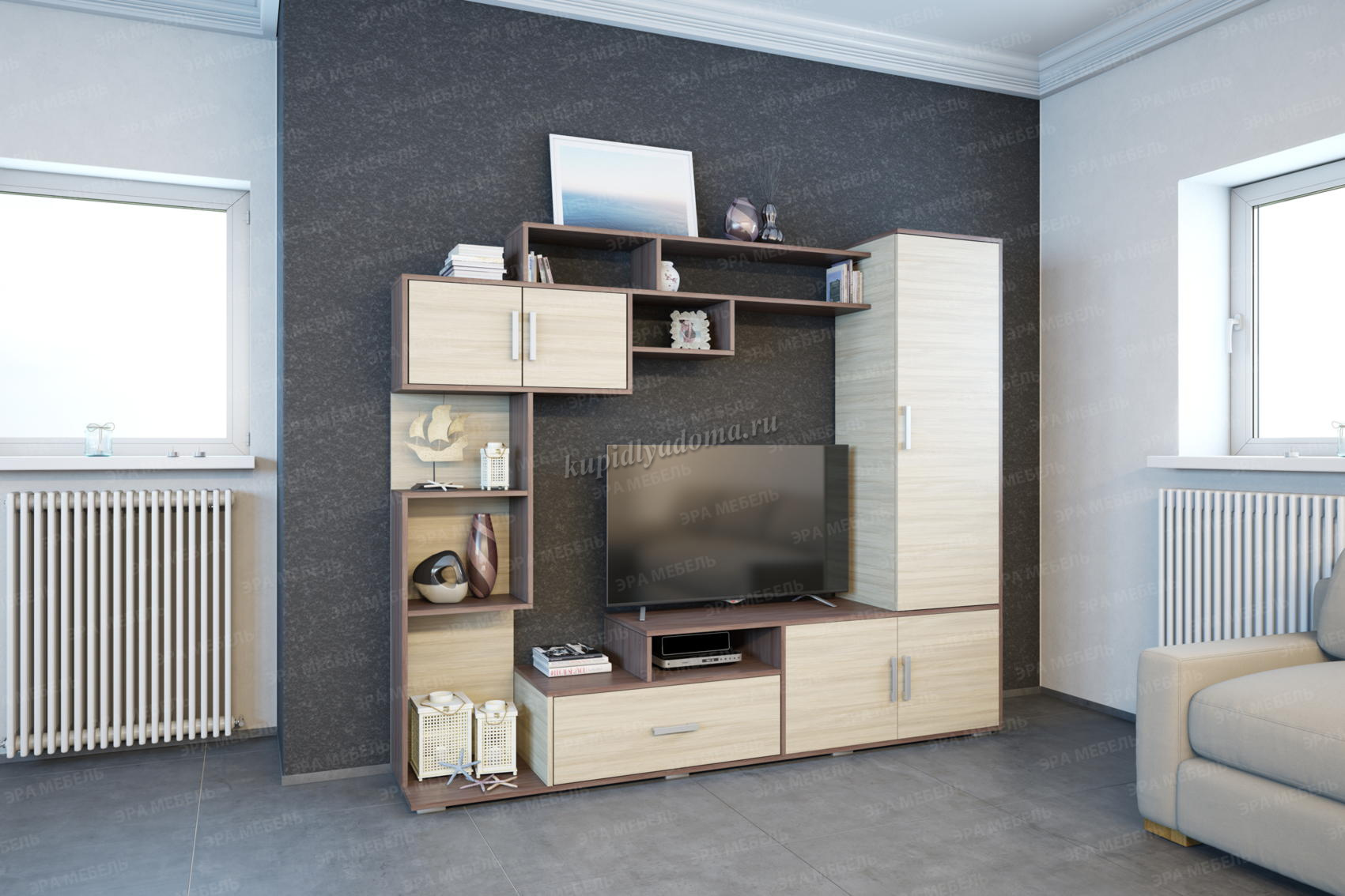Место под ТВ: 1200х1000 мм.