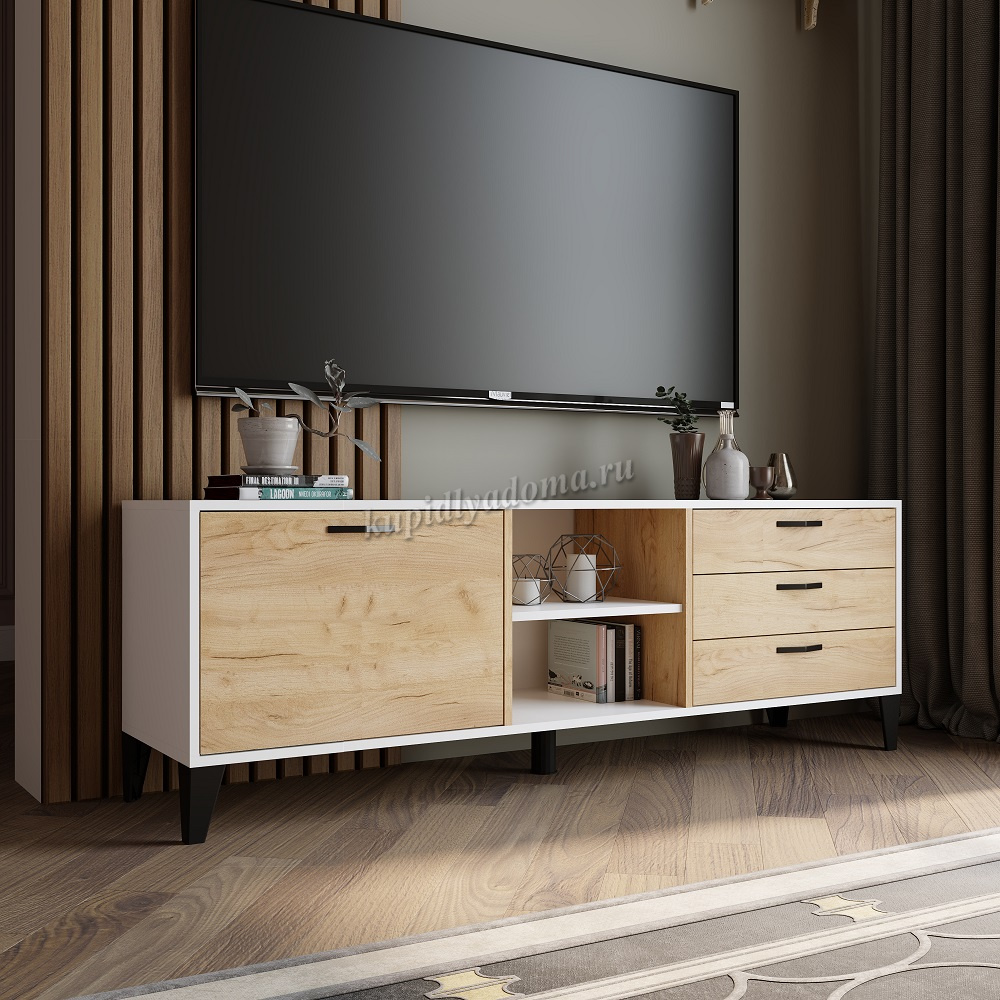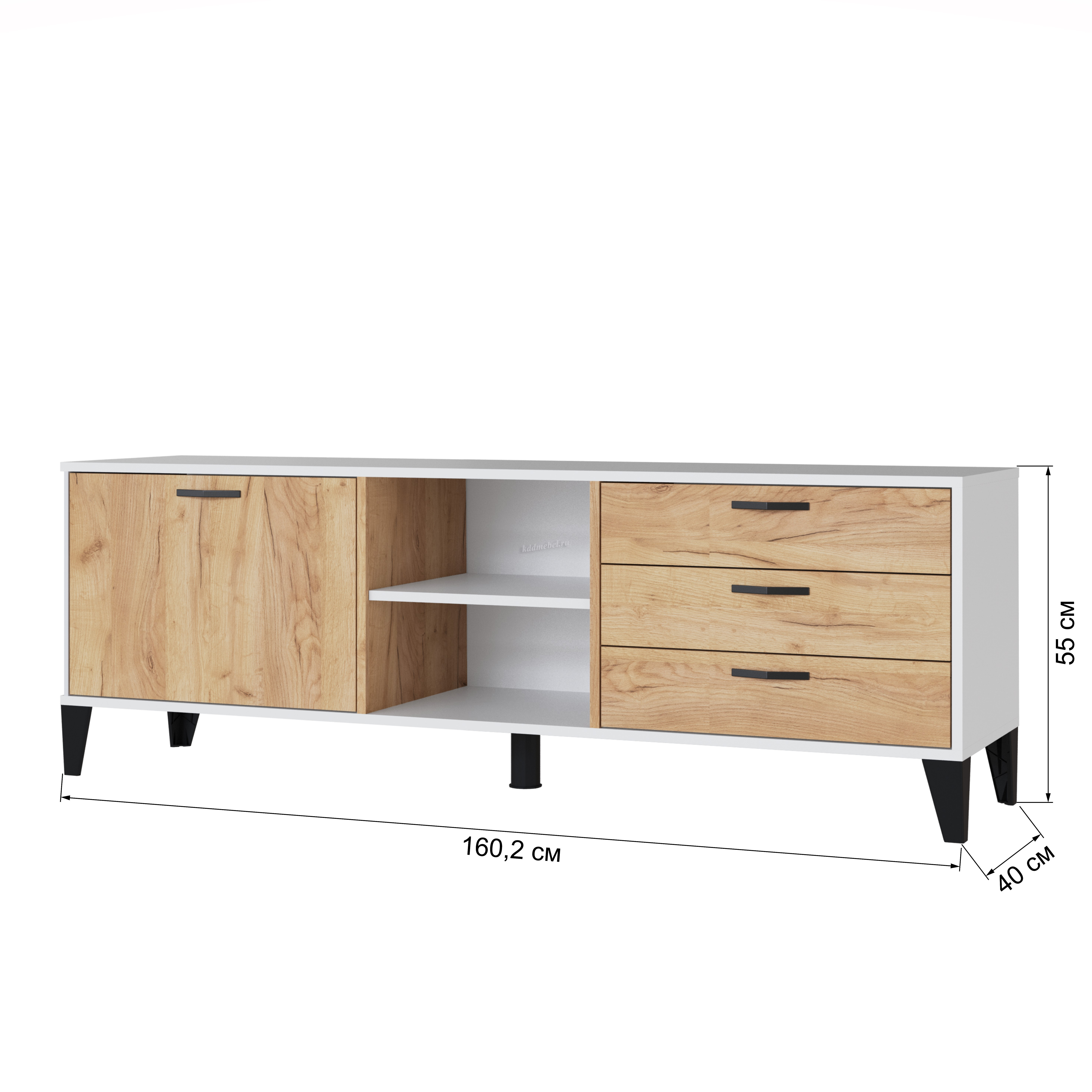 Тумба ТВ Парус-9 (Белый древесные поры/Дуб крафт золотой)