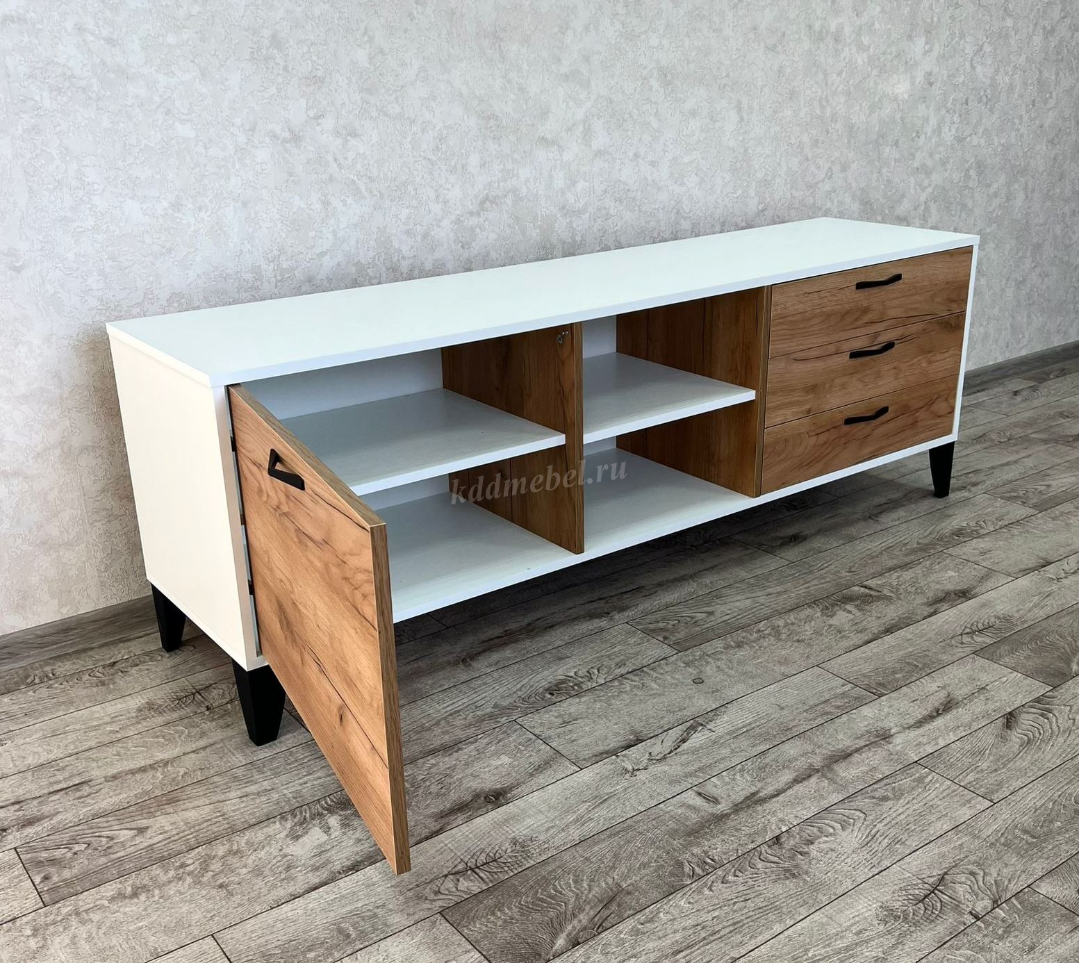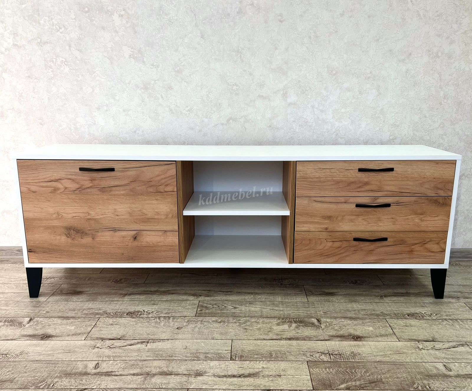 Тумба ТВ Парус-9 (Белый древесные поры/Дуб крафт золотой) наличие товара: