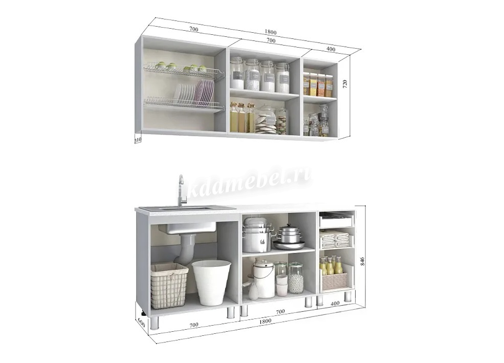 Ширина: 1800 мм. Высота: 846 мм. Глубина: 595 мм. /глубина 500 без учета столешки/