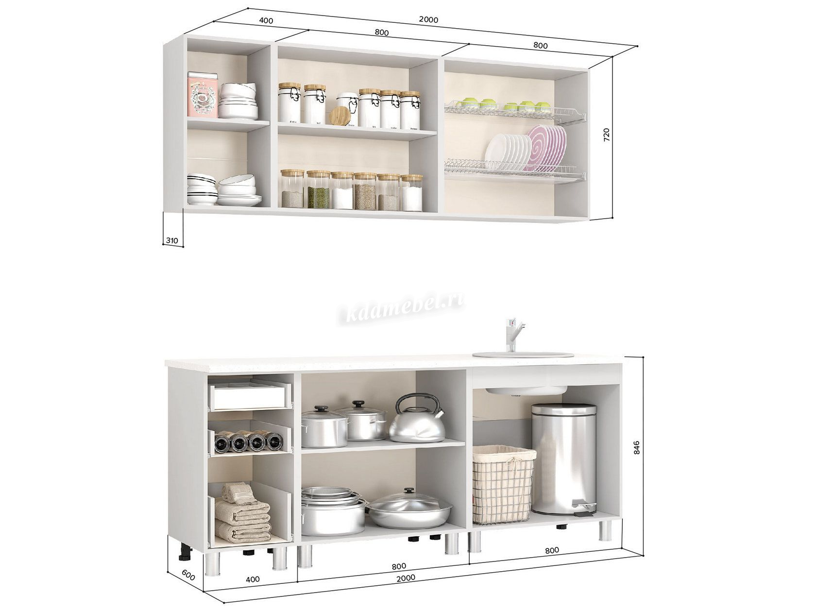 навесной шкаф 2 шт (ВхШхГ):720 х 800 х 310 мм;
