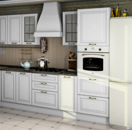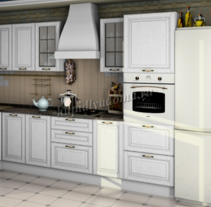Описание Кухня Кантри 1600 б/м, б/с (Белый дуб)