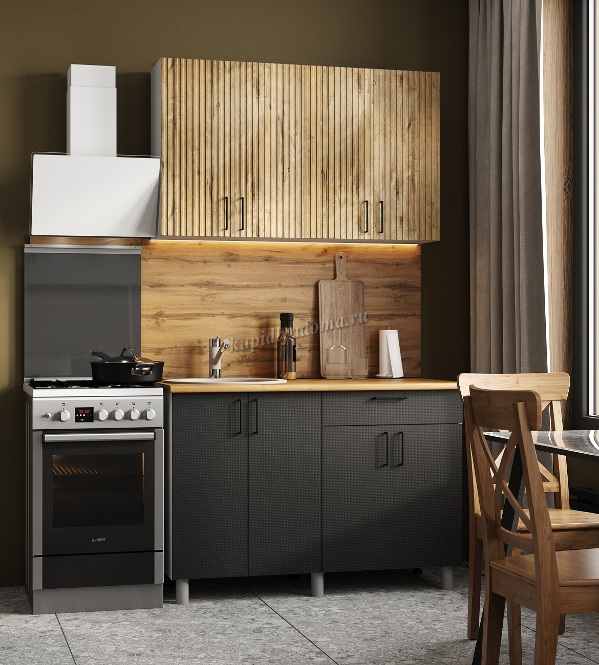 Кухня Кантри 1,2 (Дуб канадский/Карбон вулкан/Столешница Дуб вотан)