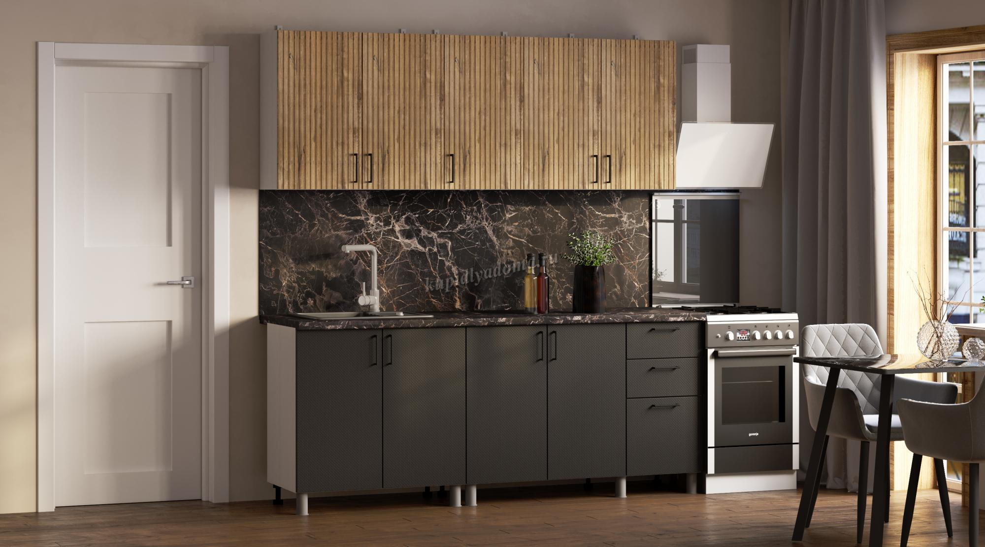 Кухня Кантри 2,0 (Дуб канадский/Карбон вулкан/Столешница Мраморный берег) наличие товара: