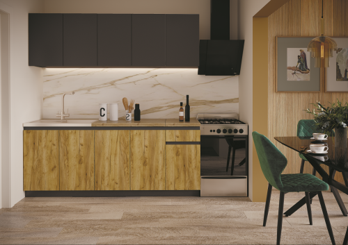 Описание Кухня Ханна NEW 2,0 б/с, б/м (Графит/Дуб крафт золотой)
