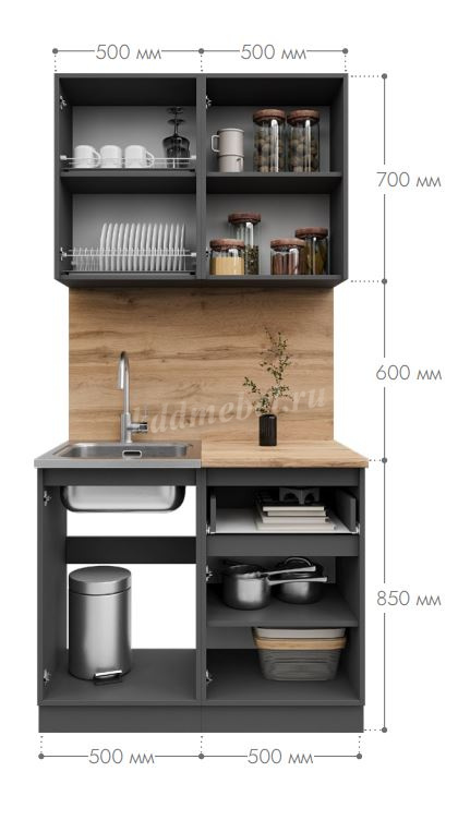 Кухня Лето 1,0 (Графит/Цемент светлый)