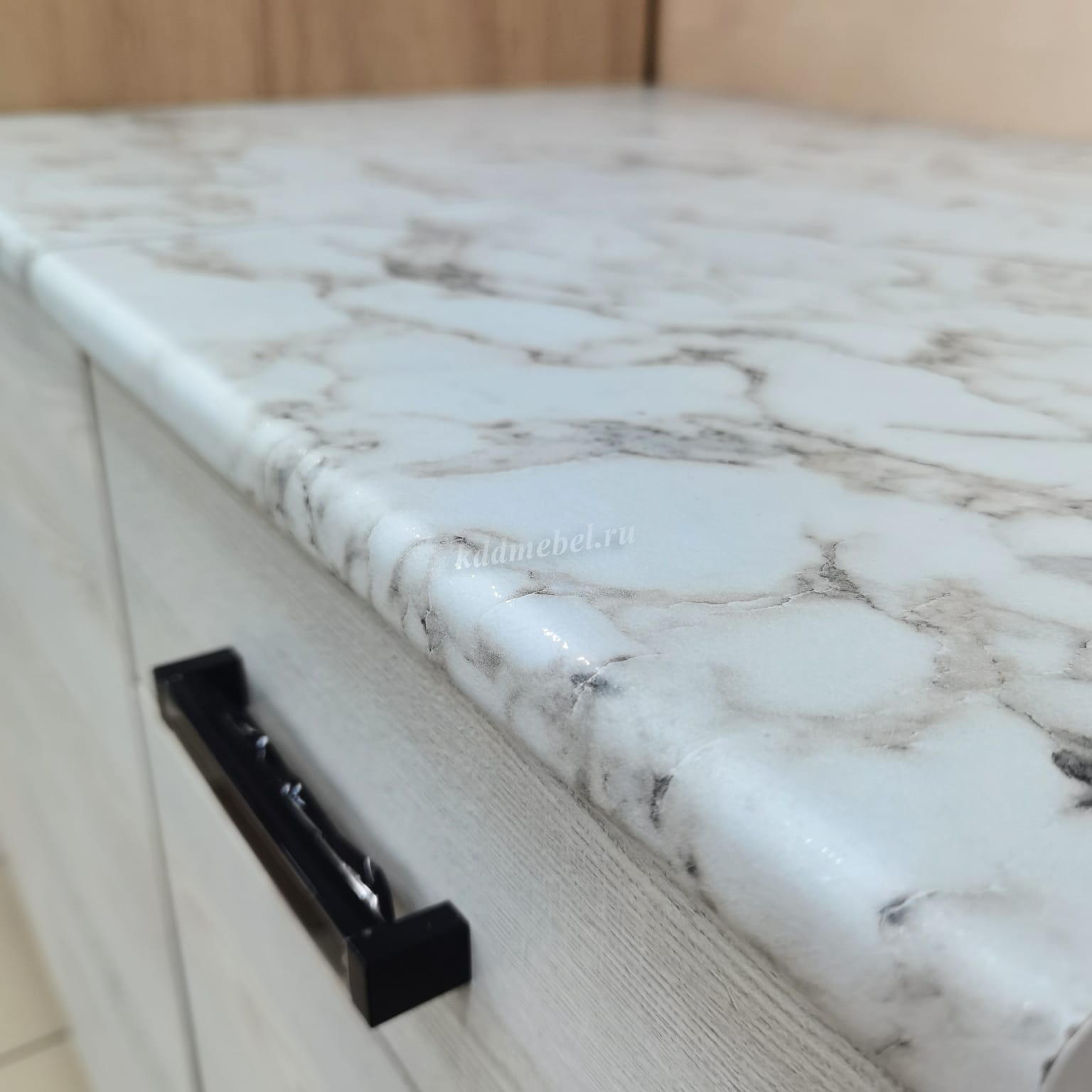 Столешница: 28мм, цвет: тростник и белый мрамор.