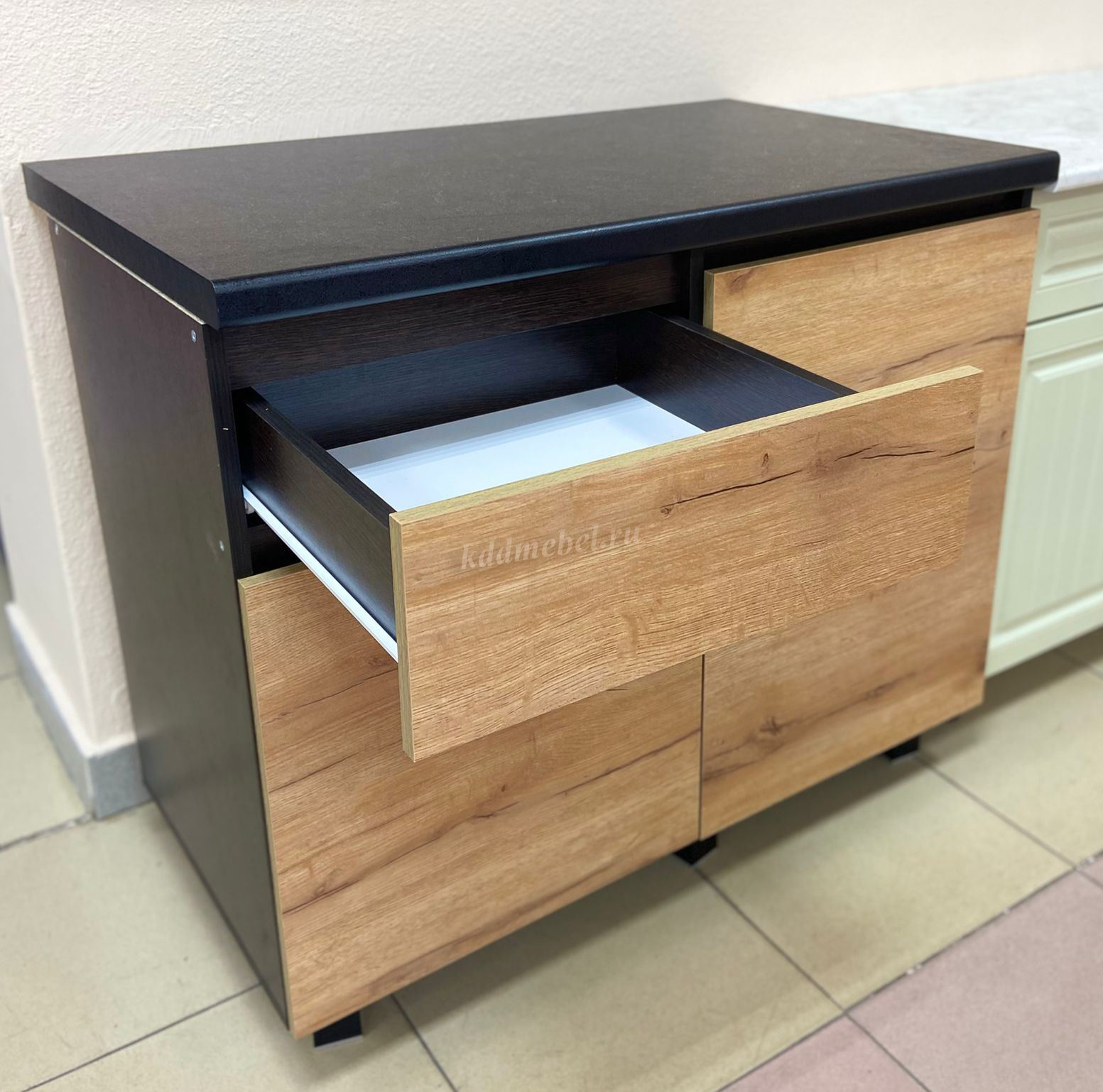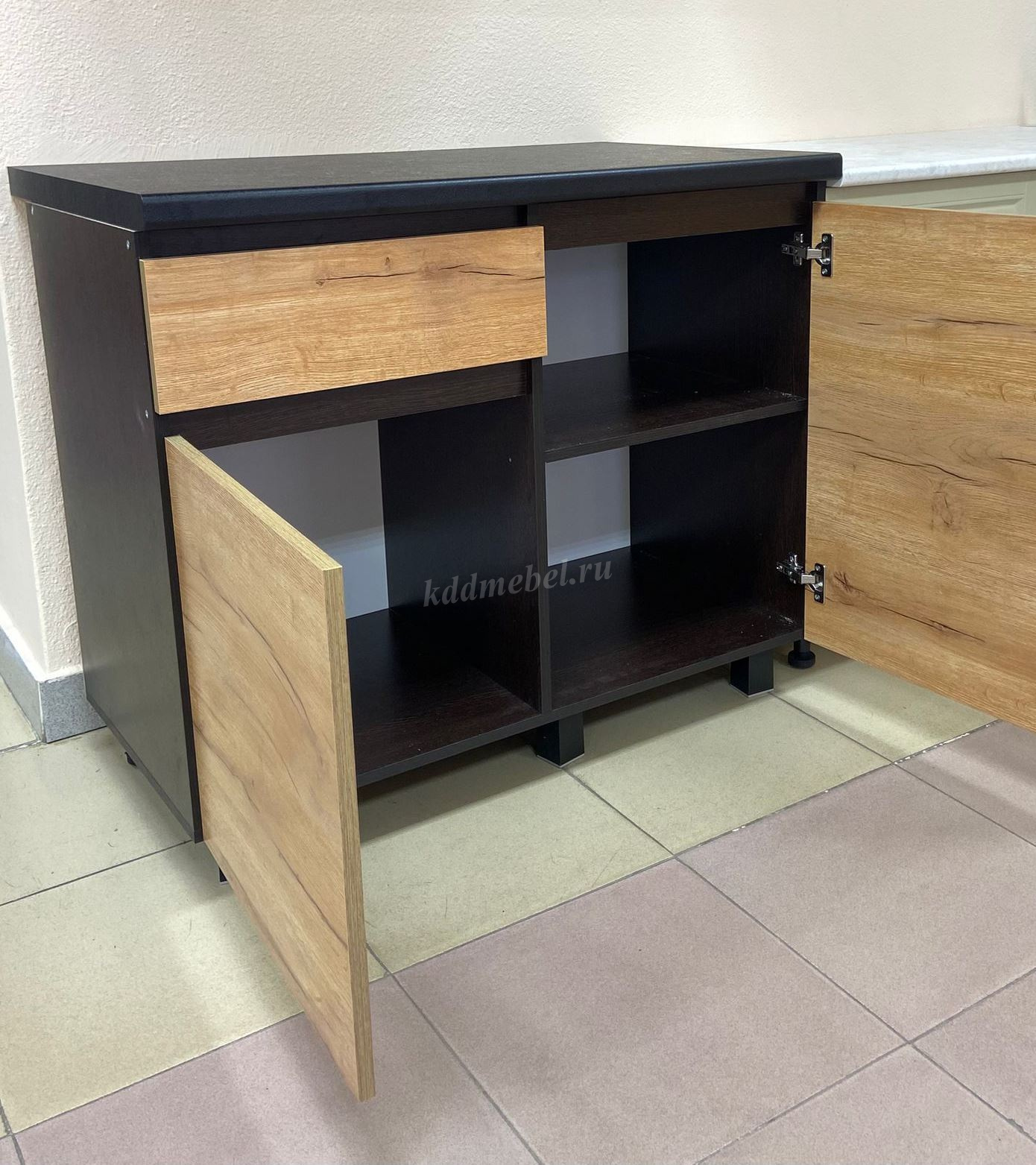 Модель выполнена в стильных цветах "венге" и "крафт", которые гармонично впишутся в интерьер с преобладание натуральных оттенков.