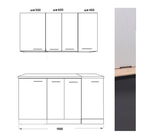 Кухня Золушка 1,5 МДФ (Дуб бунратти/Софт Грин фрез/Графит/Дуб бунратти) наличие товара: