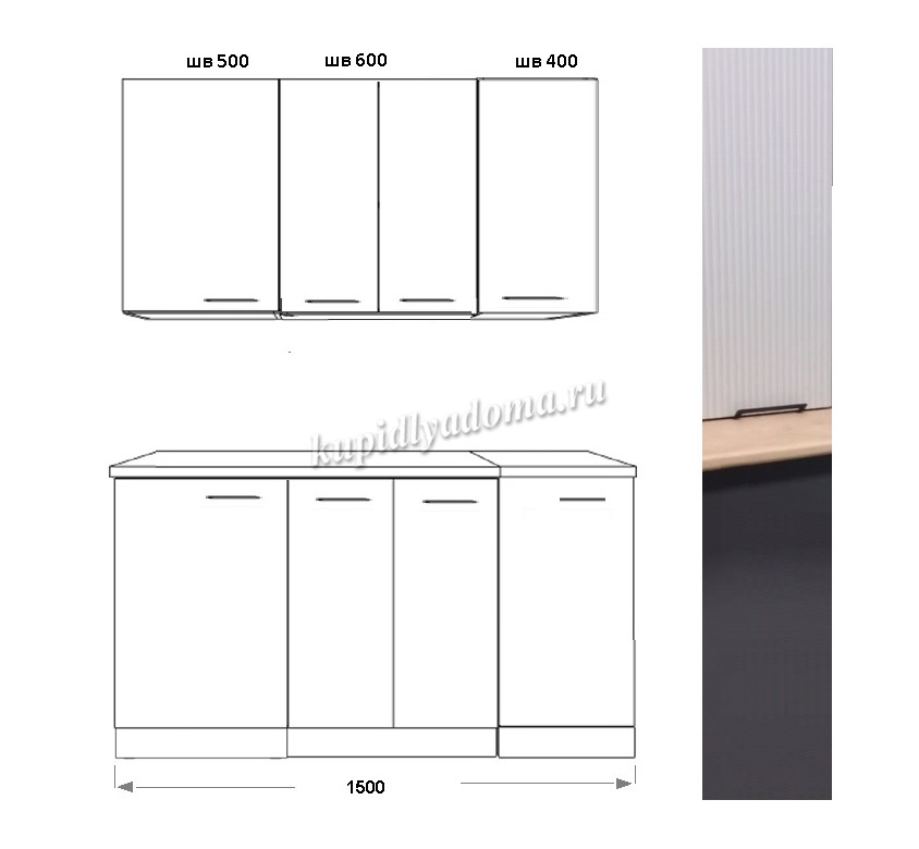 Описание Кухня Золушка 1,5 МДФ (Дуб бунратти/Софт Грин фрез/Графит/Дуб бунратти)