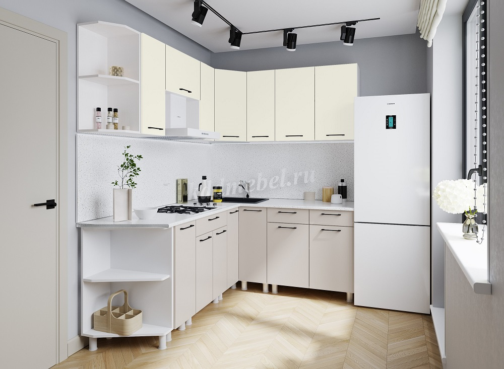 Угловой рабочий стол угол прямой УР2 кухня Марбл без столешницы (Белый/Слоновая кость) наличие товара: