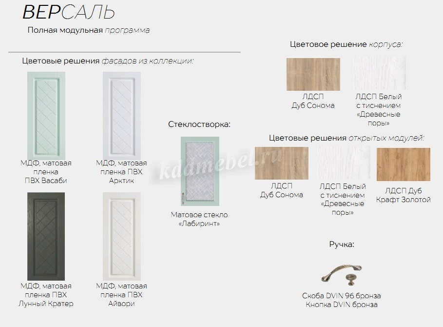 — Фасады из плиты МДФ, облицованные высококачественной матовой пленкой ПВХ толщиной 0,3 мм.