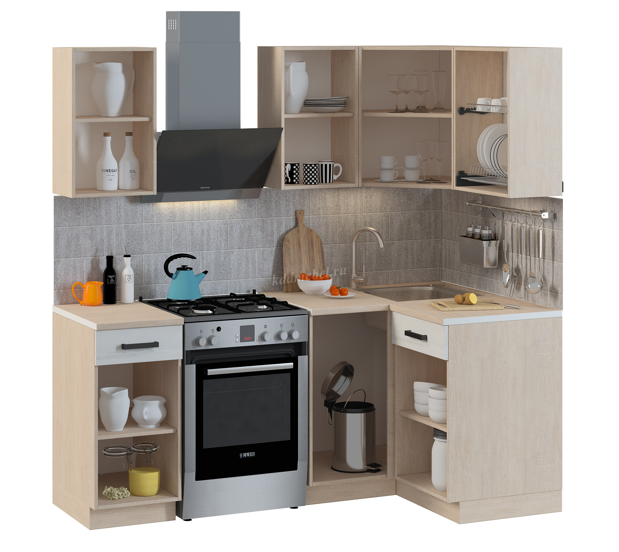 Кухня угловая 1,4*1,1 Алиса Loft комп №3 (Дуб сонома/Сосна белая) наличие товара: