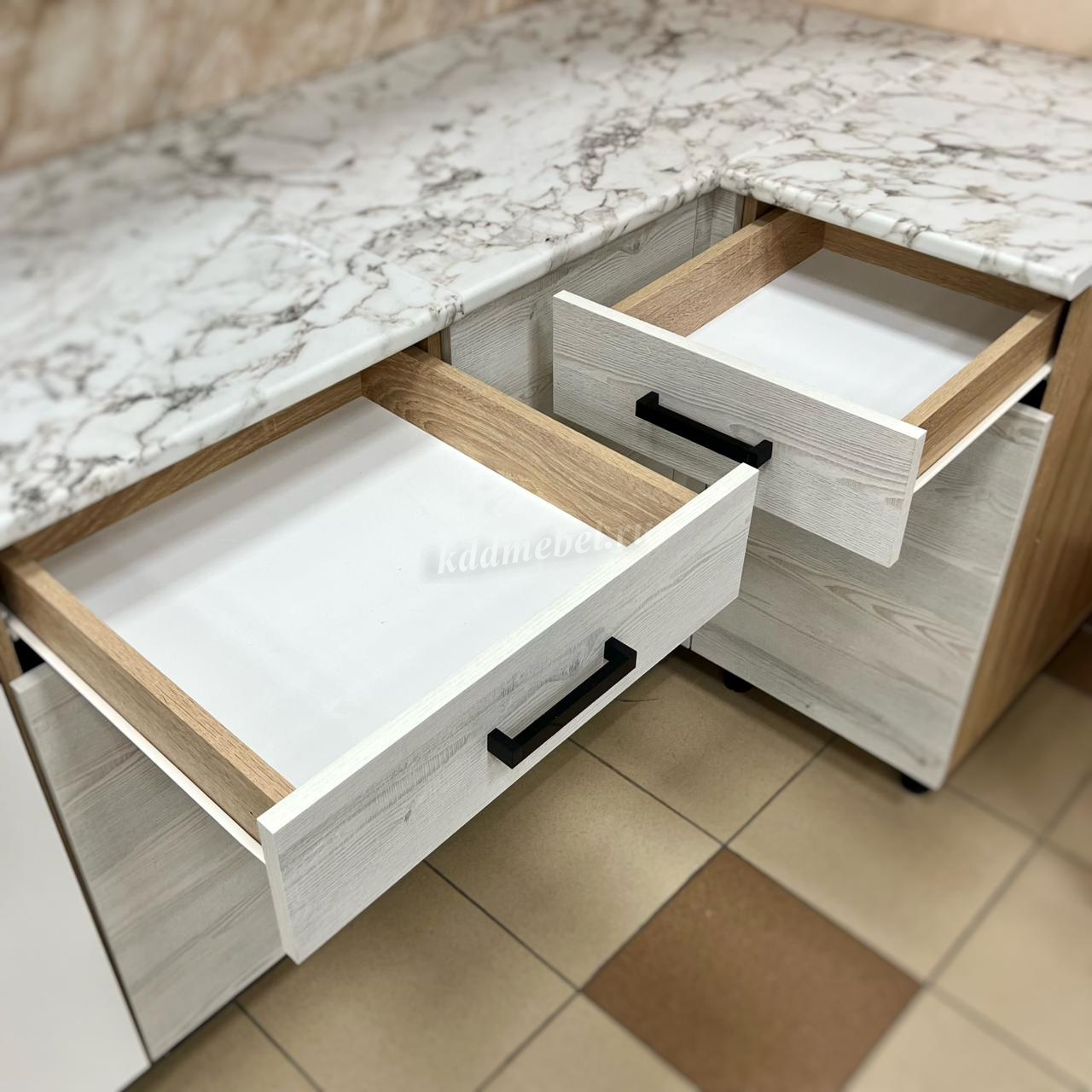 Столешница: 28мм, цвет: тростник и белый мрамор.