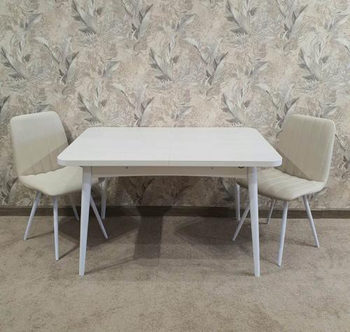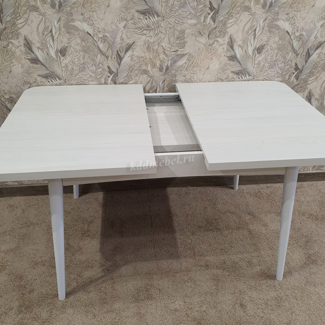Стол трансформер «Ялта 2» имеет столешницу с закругленными углами, и комплектуется опорами двух типов: массив резной/массив цилиндрический.