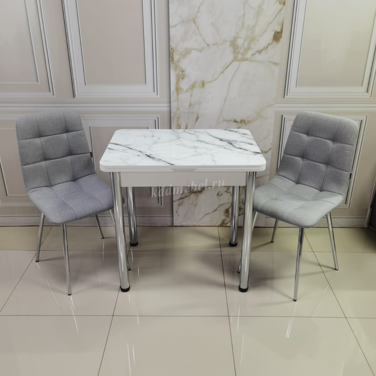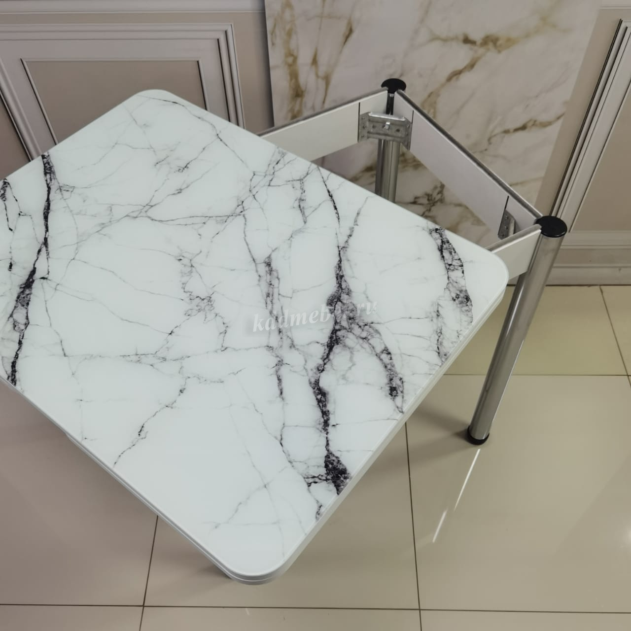 Стол обеденный Д29 раскладной (Белый мрамор/Белый) наличие товара: