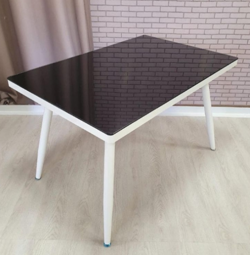 Обеденный стол со стеклянной столешницей.