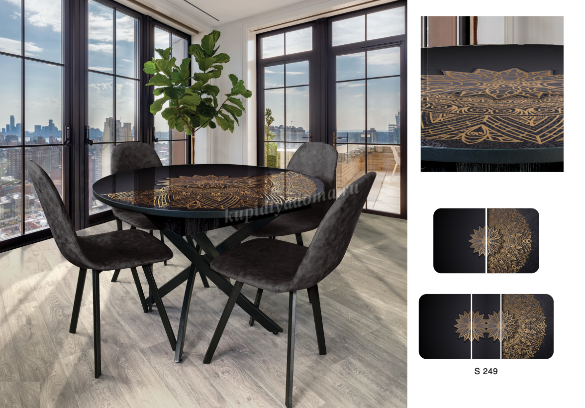 Стол обеденный раскладной Норд-4 (Опора Черный муар/Столешница Фотопечать S-249) наличие товара: