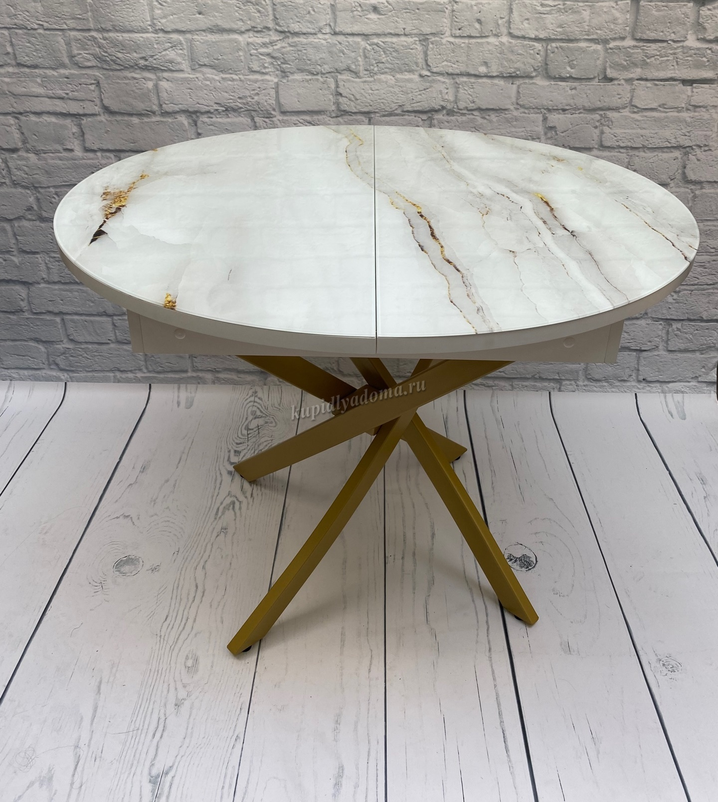 Стол обеденный раздвижной Арчи (Мрамор 691/Опоры золотоые) наличие товара: