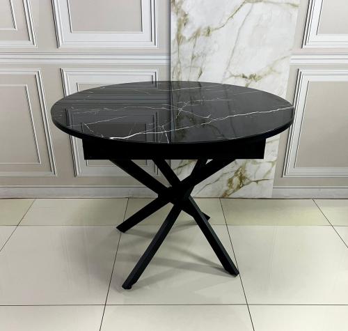 Стол обеденный раздвижной Арчи (Мрамор черный 074/Опоры черные)