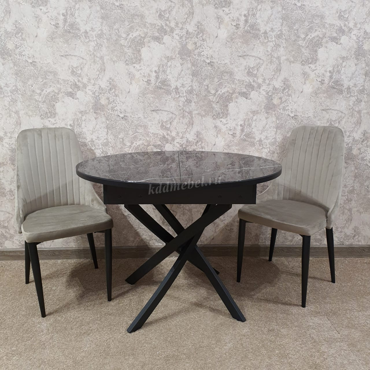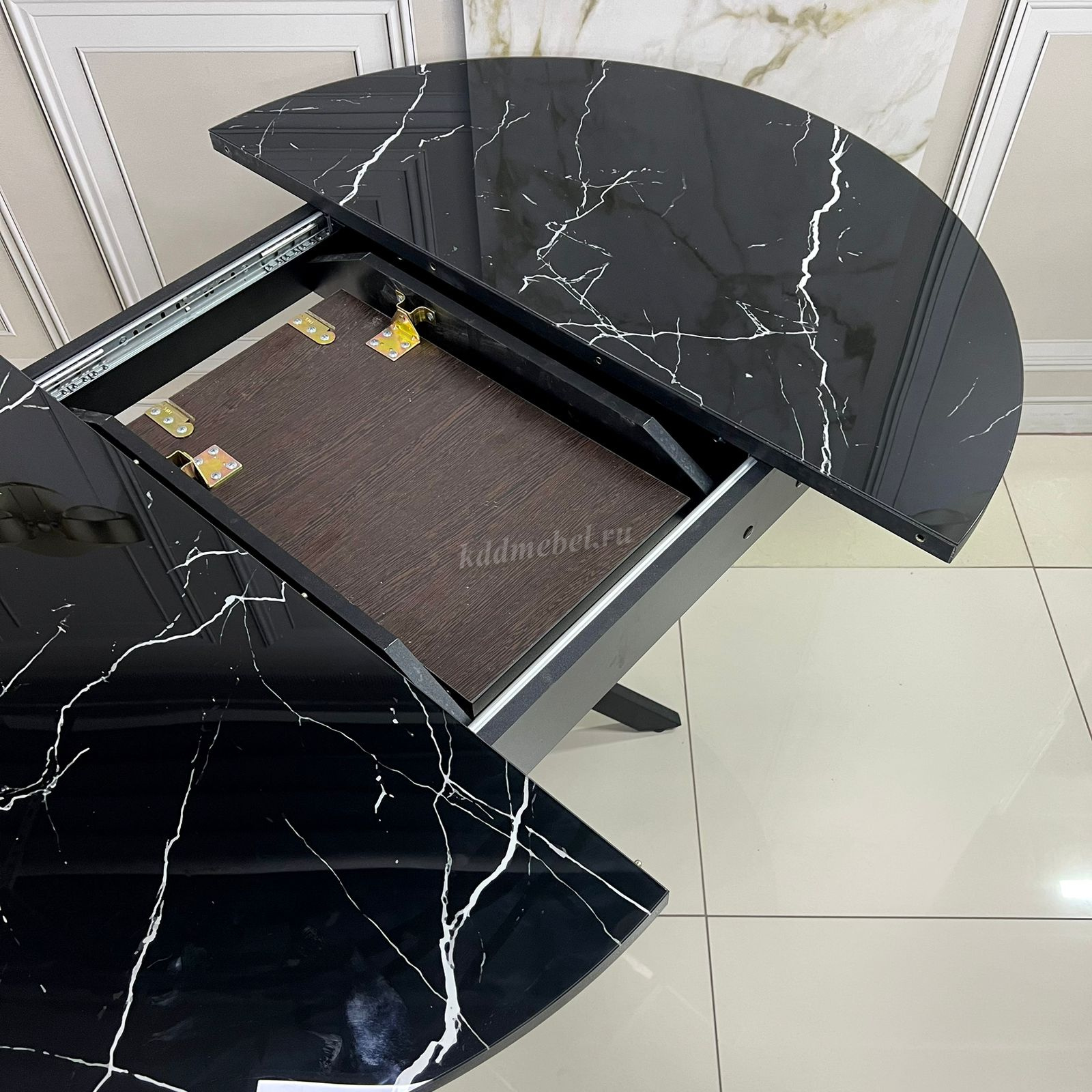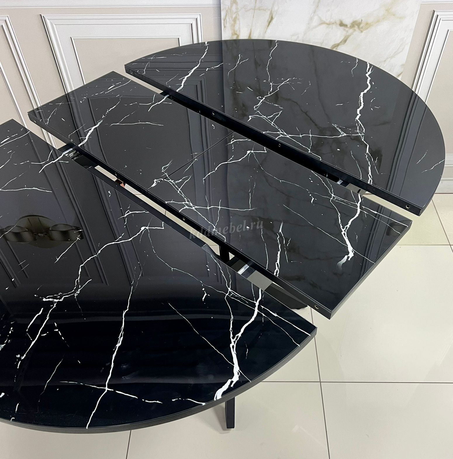 Стол обеденный раздвижной Арчи (Мрамор черный 074/Опоры черные) наличие товара:
