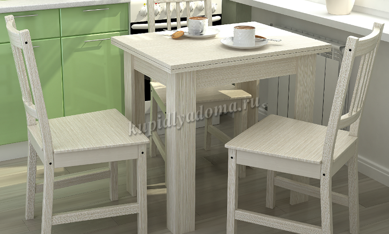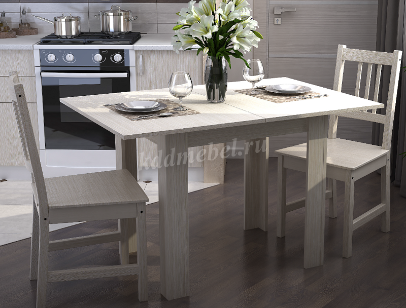 Классический обеденный стол воплотил в себе незатейливую конструкцию и сдержанную элегантность в современном стиле «минимализм», а его скромный внешний вид позволит ему достойно вписаться в абсолютно любую обстановку. Такая модель будет практичным и полезным дополнением для небольшой кухни как в квартире, так и в дачном домике, отличается он лаконичными формами, простотой и чёткостью линий. Современный силуэт стола не отягощен излишними деталями, что придает изделию легкость и изящество. Ножки оригинальной формы не только отличаются эффектным внешним видом, но и обеспечивают высокую устойчивость, оставляя под столом достаточно пространства. Удобный кухонный стол идеален для небольших помещений, ведь в сложенном виде его ширина составляет 800 мм, а если к вам придут гости, то его всегда можно разложить до длины 1200 мм.