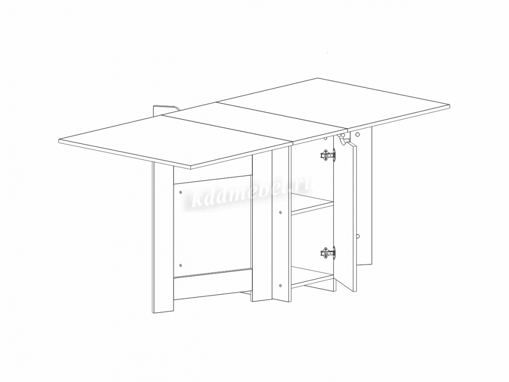Данная модель занимает совсем немного места и в одно мгновение превращается из компактного столика в обеденный. А после трапезы вы можете вернуть его на прежнее место.