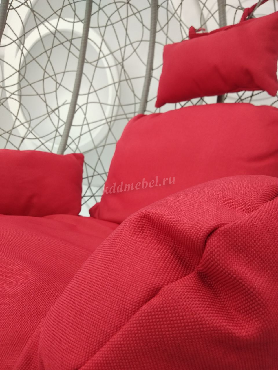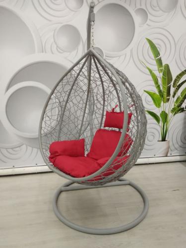 Кресло подвесное большое Кокон F-03 (Светло-серый ротанг/Красная подушка) наличие товара: