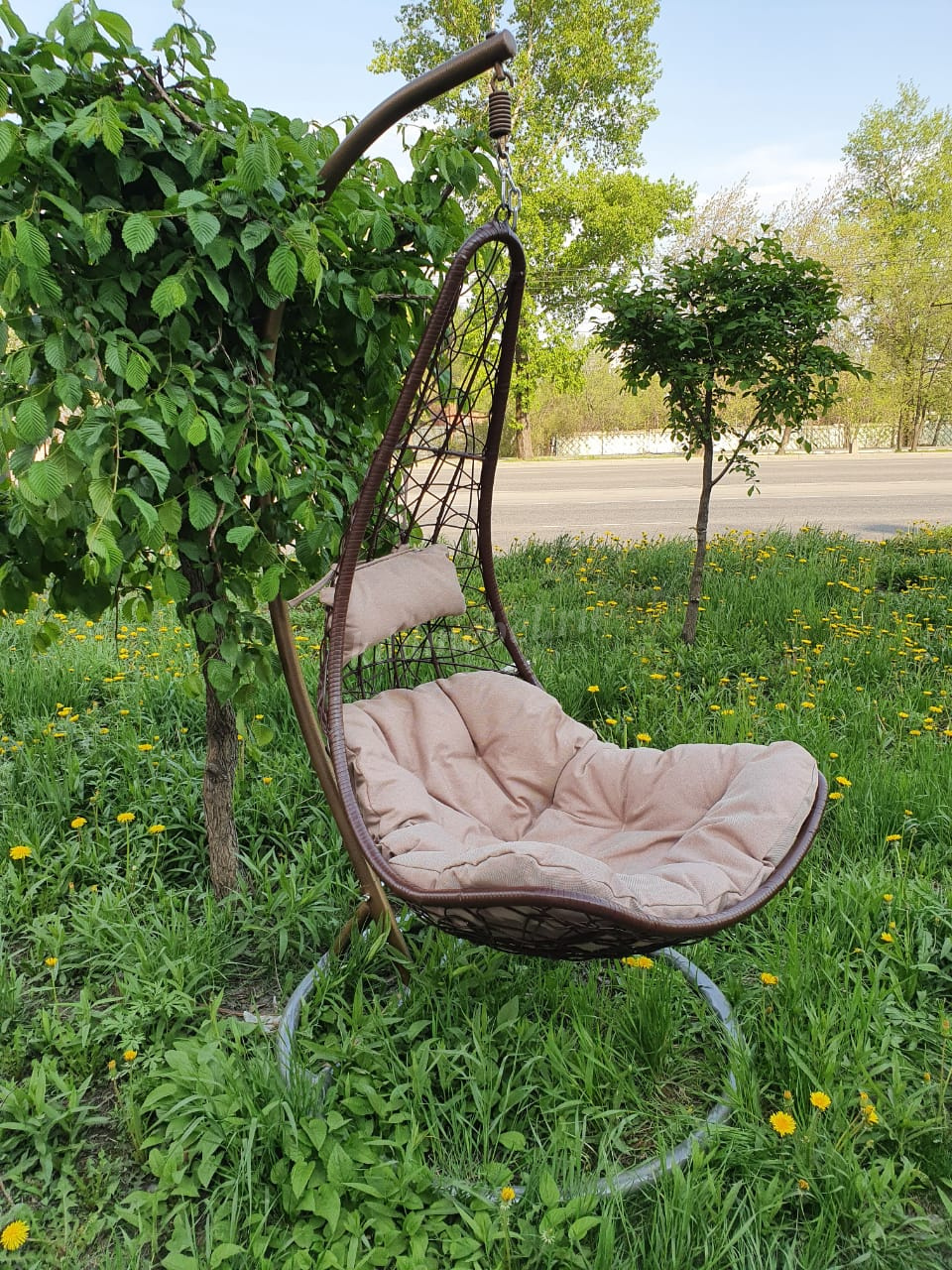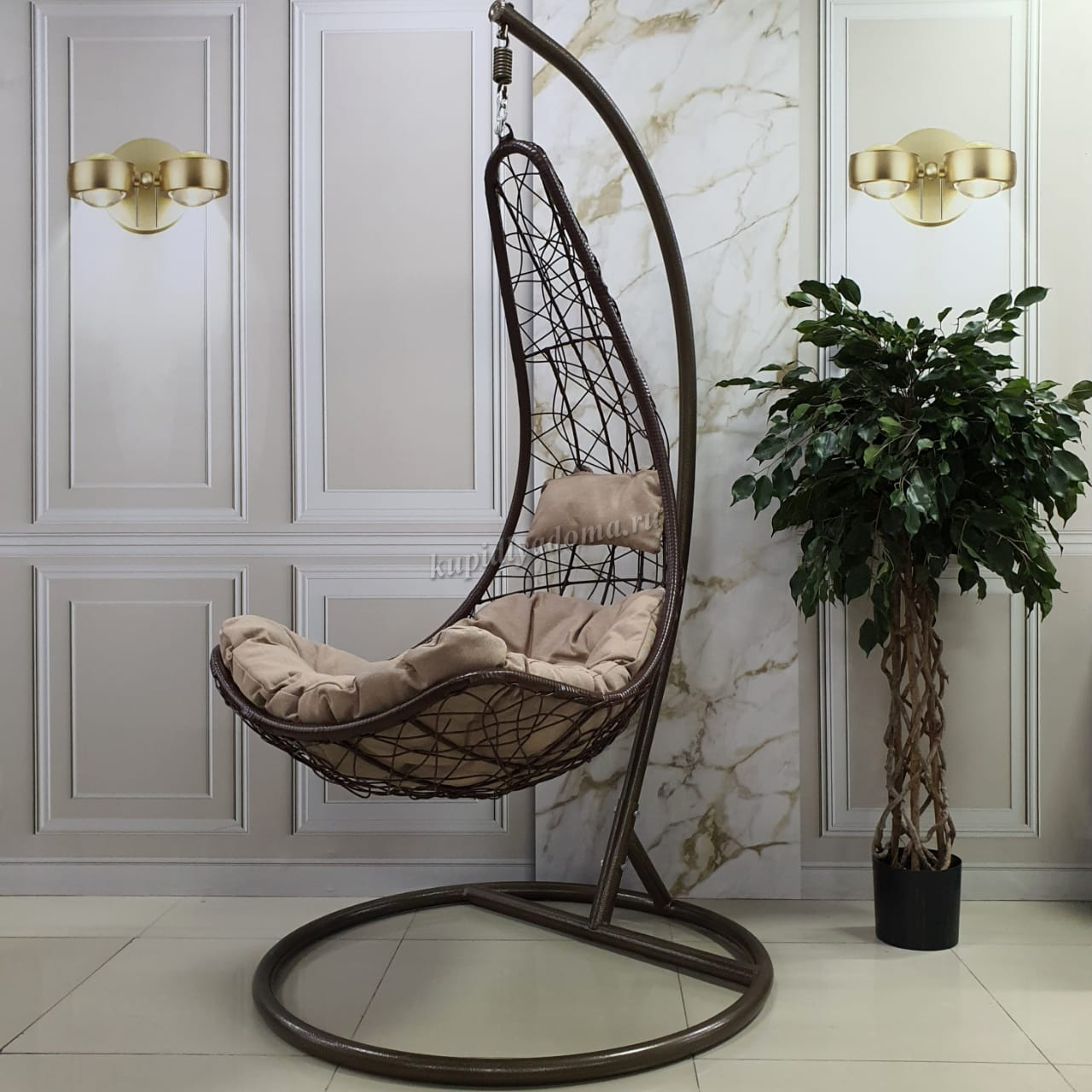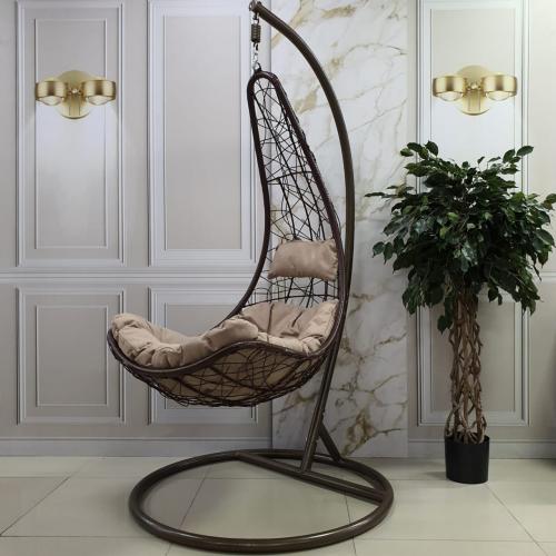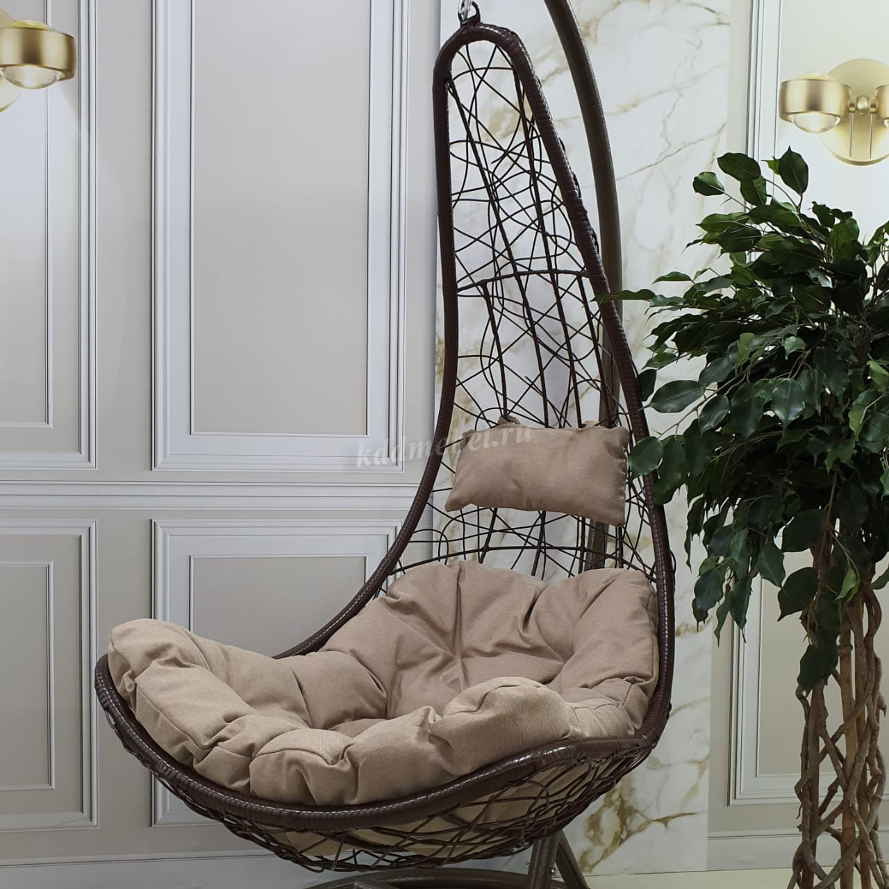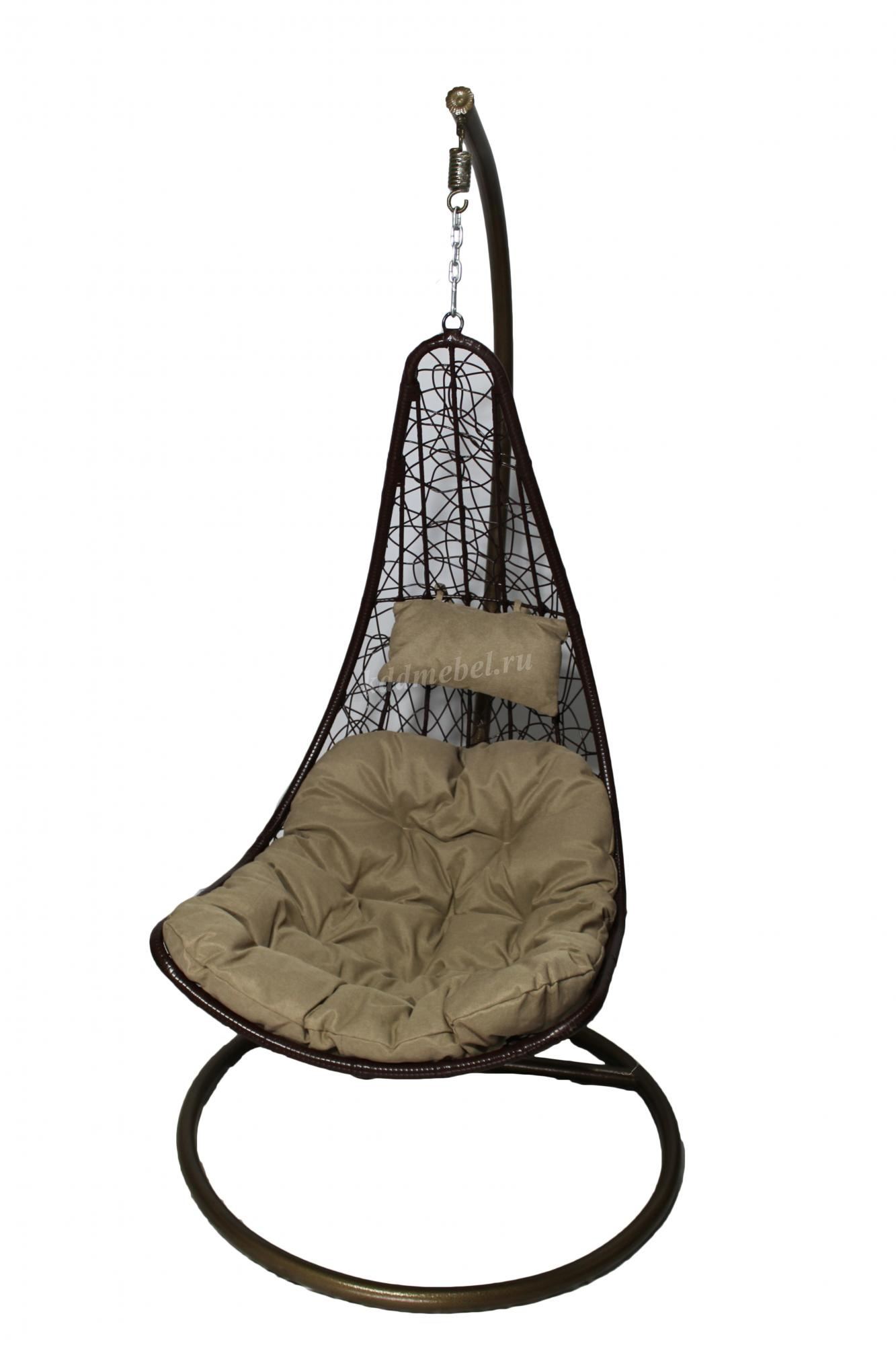 Кресло подвесное Кокон F-05 (Коричневый ротанг/Бежевая подушка) наличие товара: