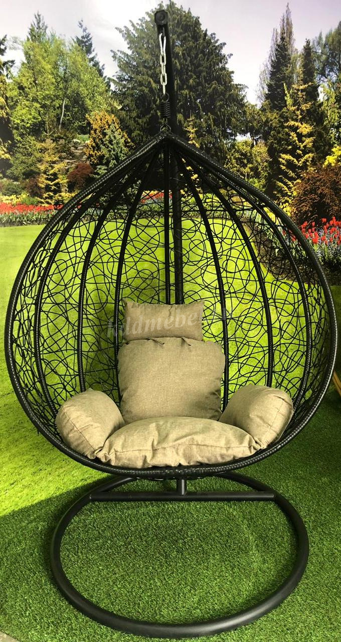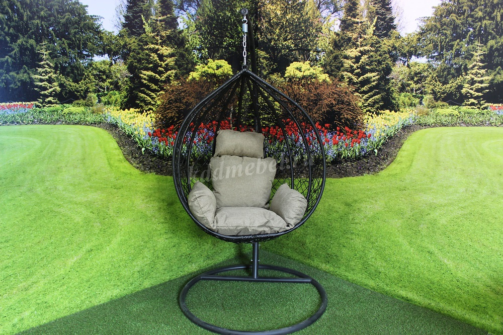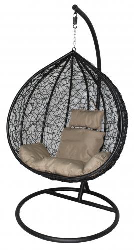 Кресло подвесное маленькое Кокон F-03 (Черный ротанг/Бежевая подушка)