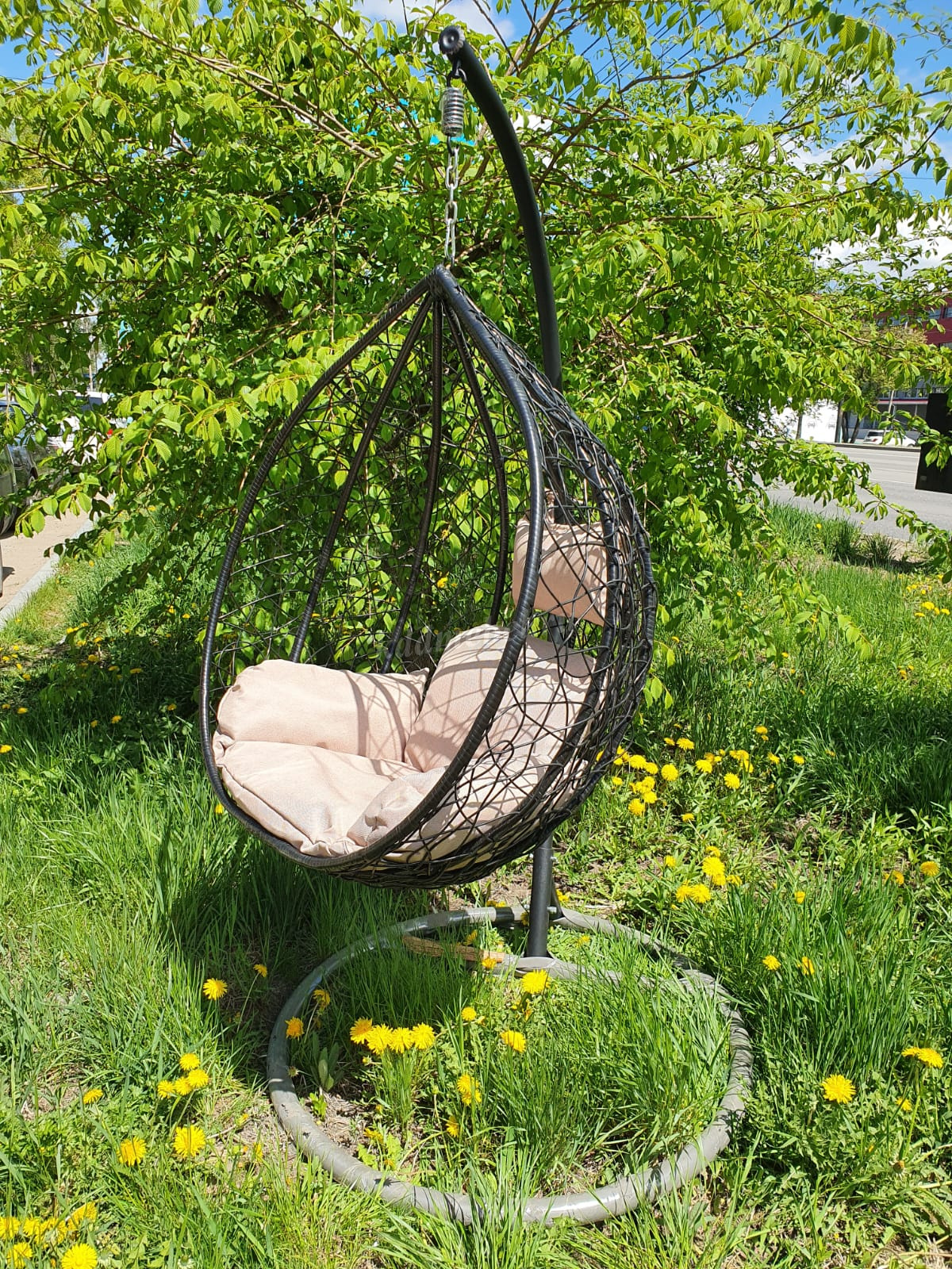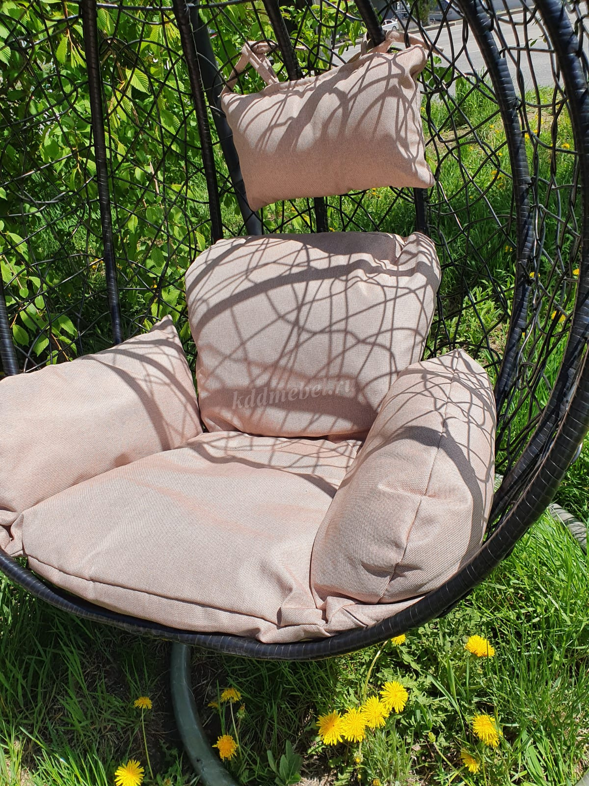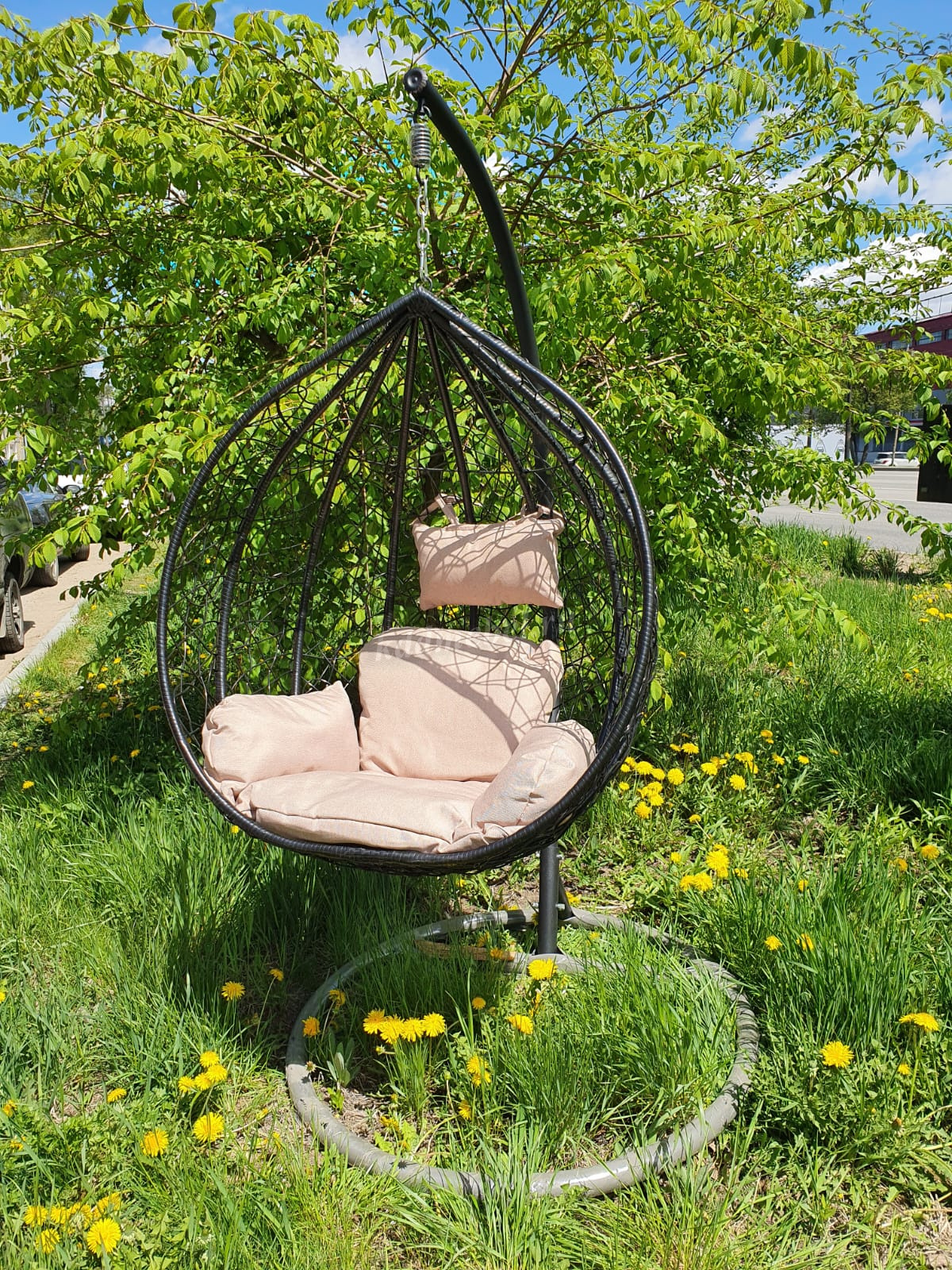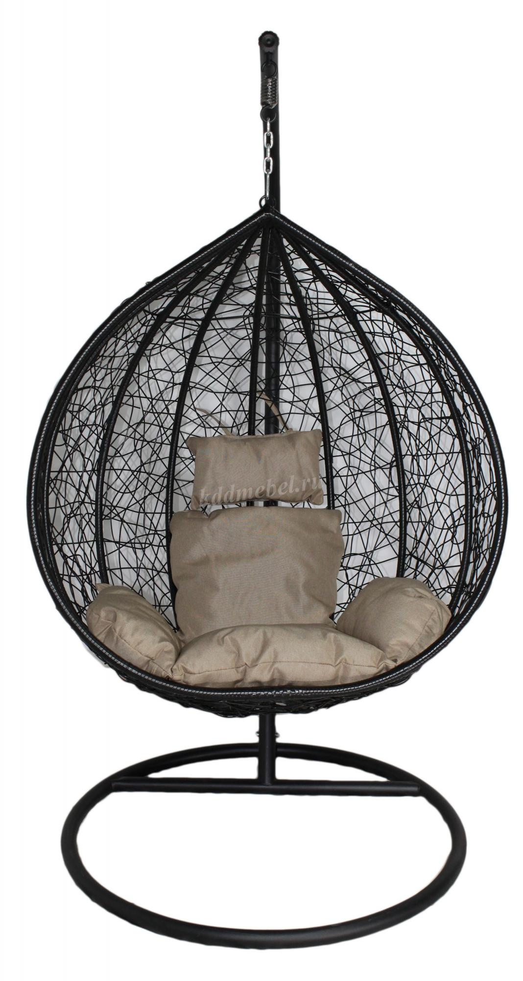 Кресло подвесное маленькое Кокон F-03 (Черный ротанг/Бежевая подушка) наличие товара: