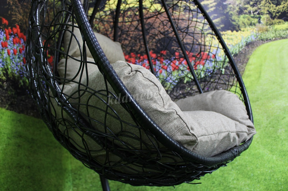 Описание Кресло подвесное маленькое Кокон F-03 (Черный ротанг/Бежевая подушка)