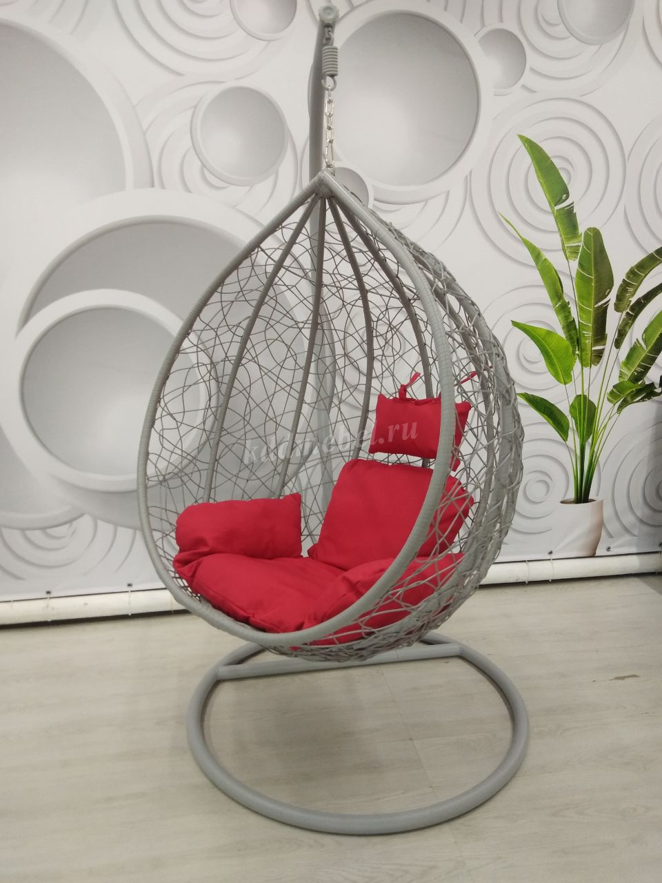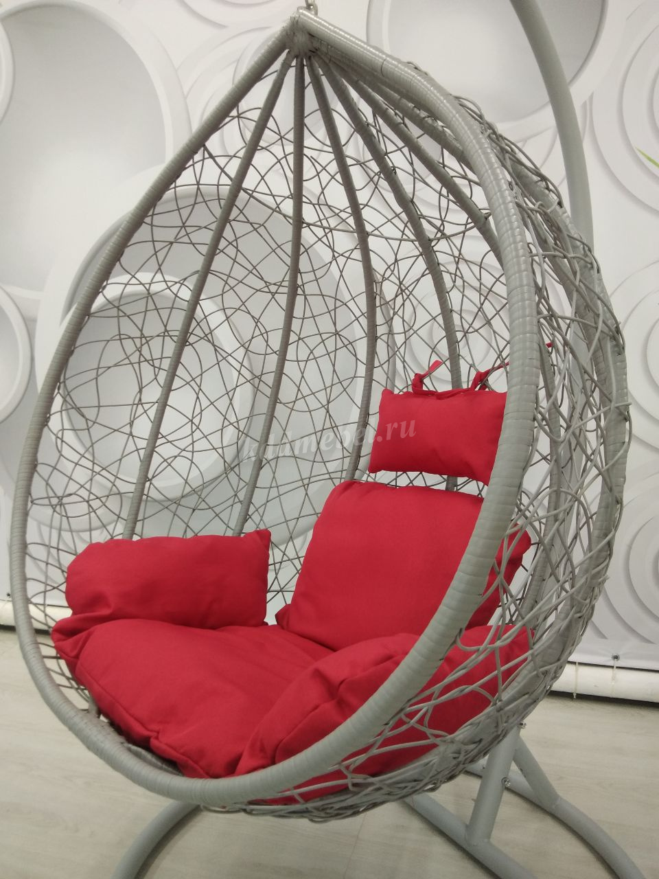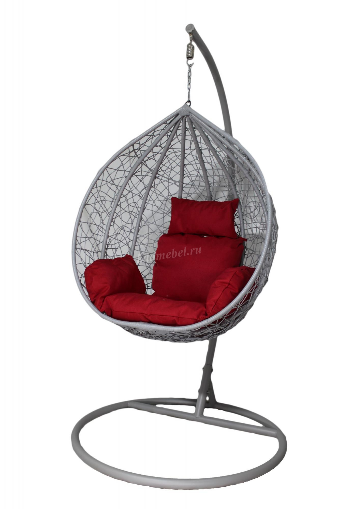 Кресло подвесное маленькое Кокон F-03 (Светло-серый ротанг/Красная подушка) наличие товара: