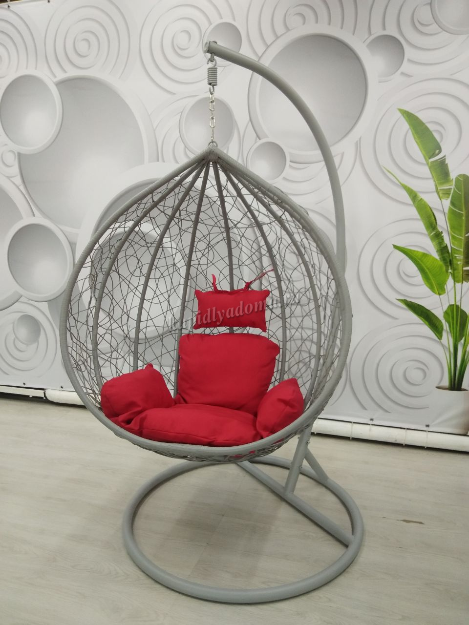Описание Кресло подвесное маленькое Кокон F-03 (Светло-серый ротанг/Красная подушка)