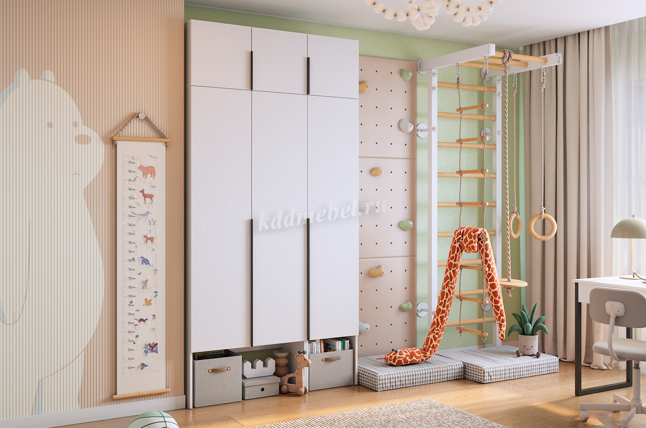 Изготовленный из высококачественного ЛДСП толщиной 16 мм, шкаф гарантирует прочность и долговечность. Длинные пластиковые ручки добавляют современный акцент и удобство в использовании.