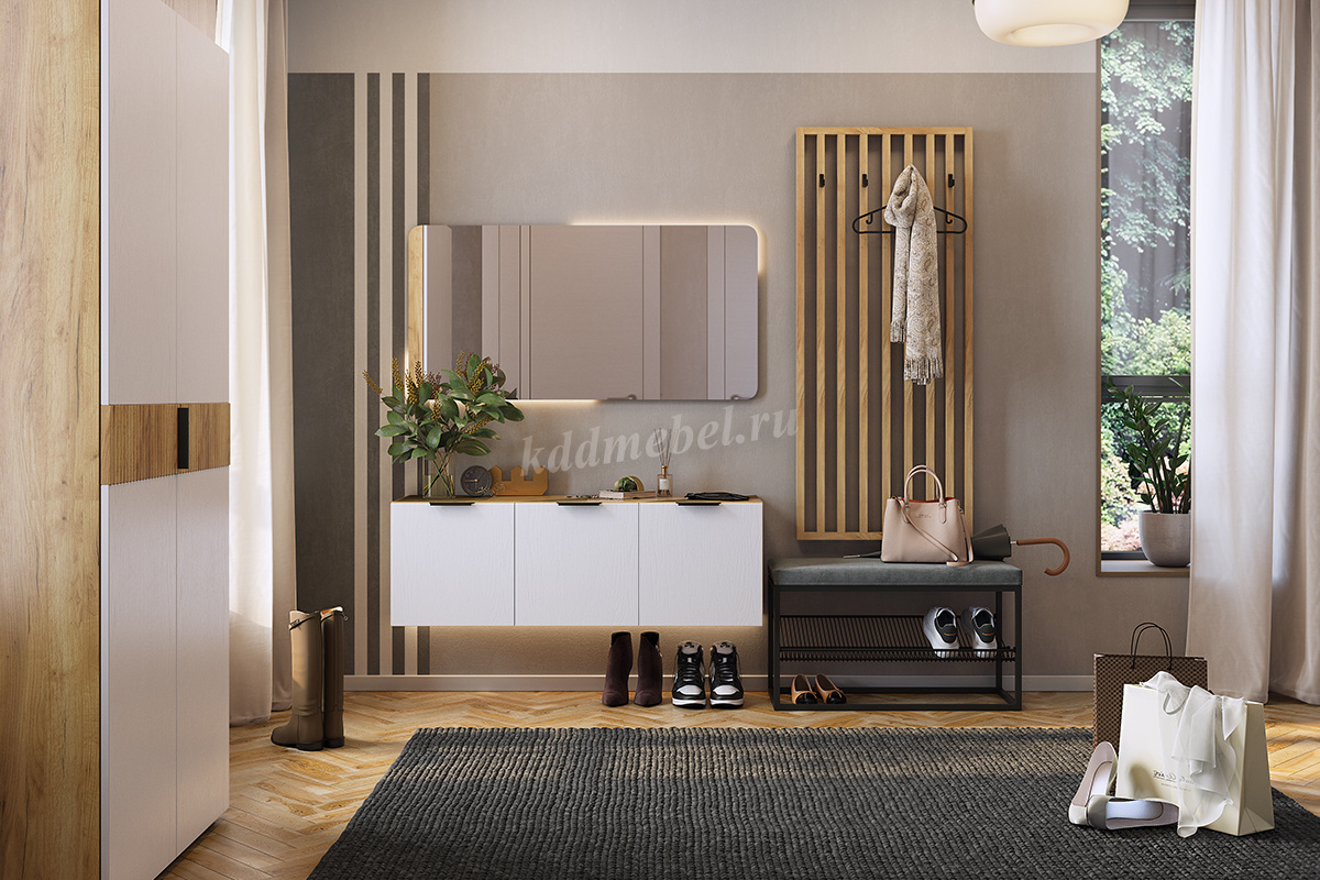 Вешалку "Бери" можно использовать, как самостоятельное изделие или дополнить шкафами и антресолями из серии "Бери".