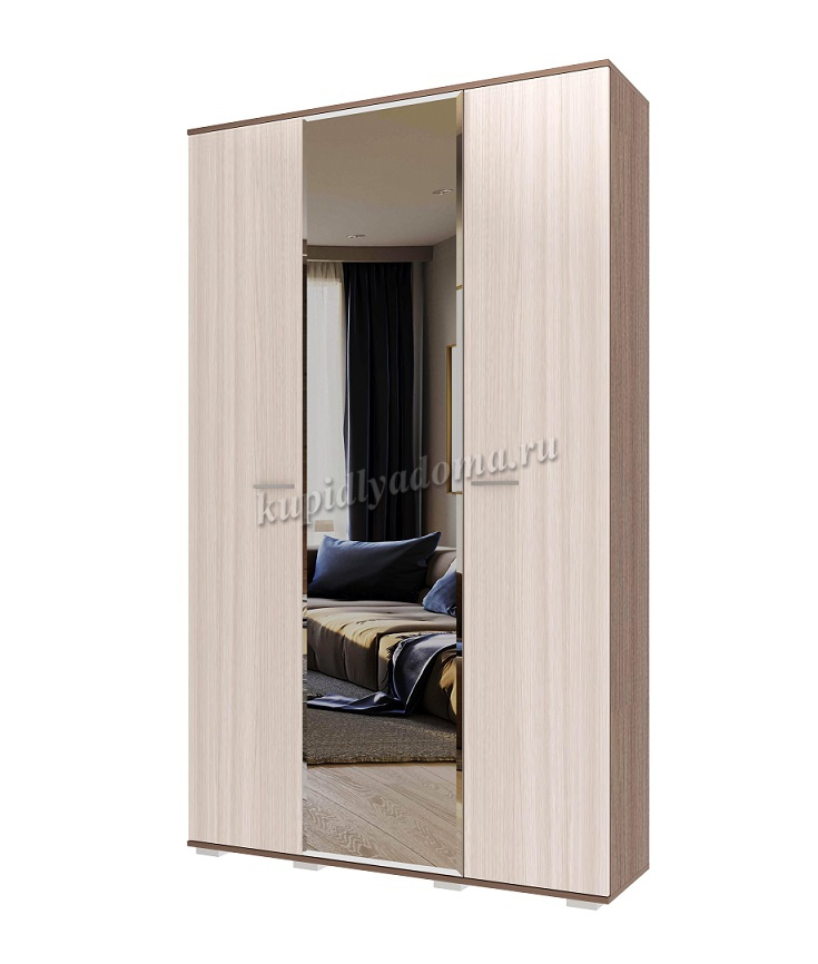 Описание Шкаф трехстворчатый с зеркалом Италия (Ясень шимо темный/Ясень шимо светлый)