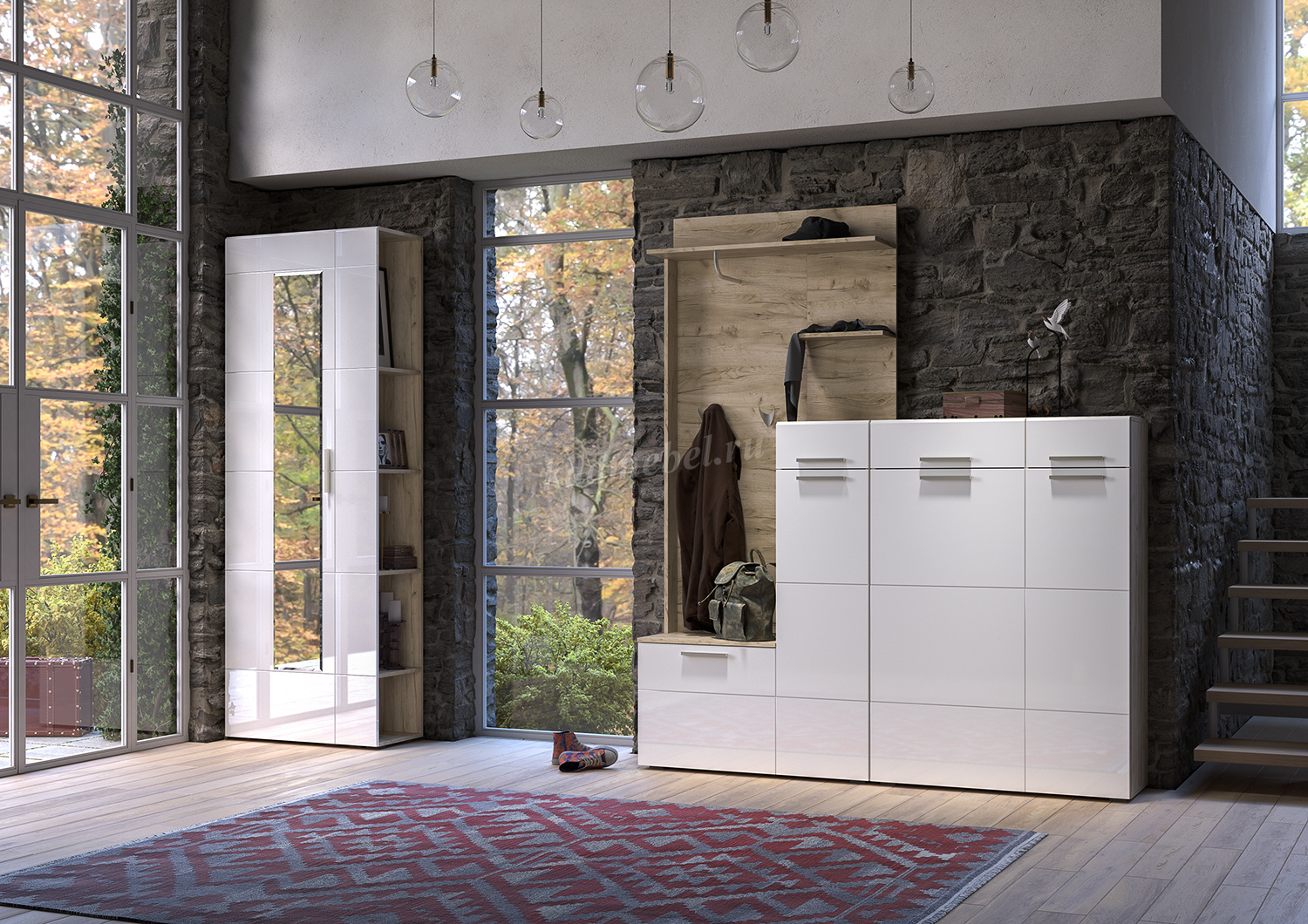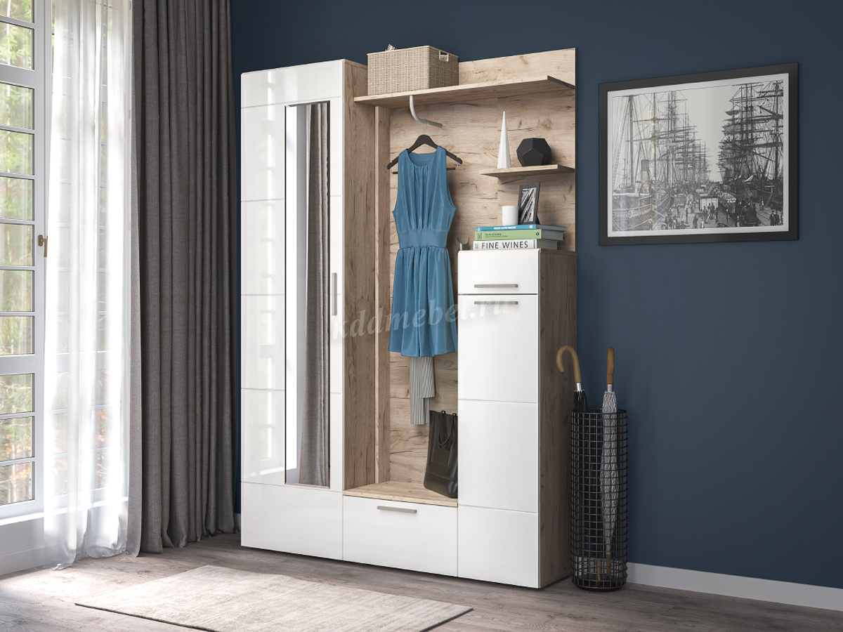 Описание Шкаф для одежды Лайн 08.122 (Дуб серый крафт/Белый глянец)