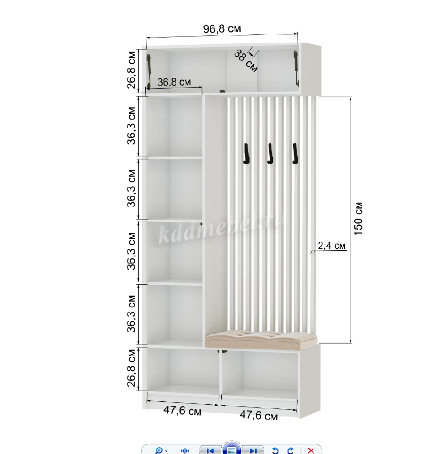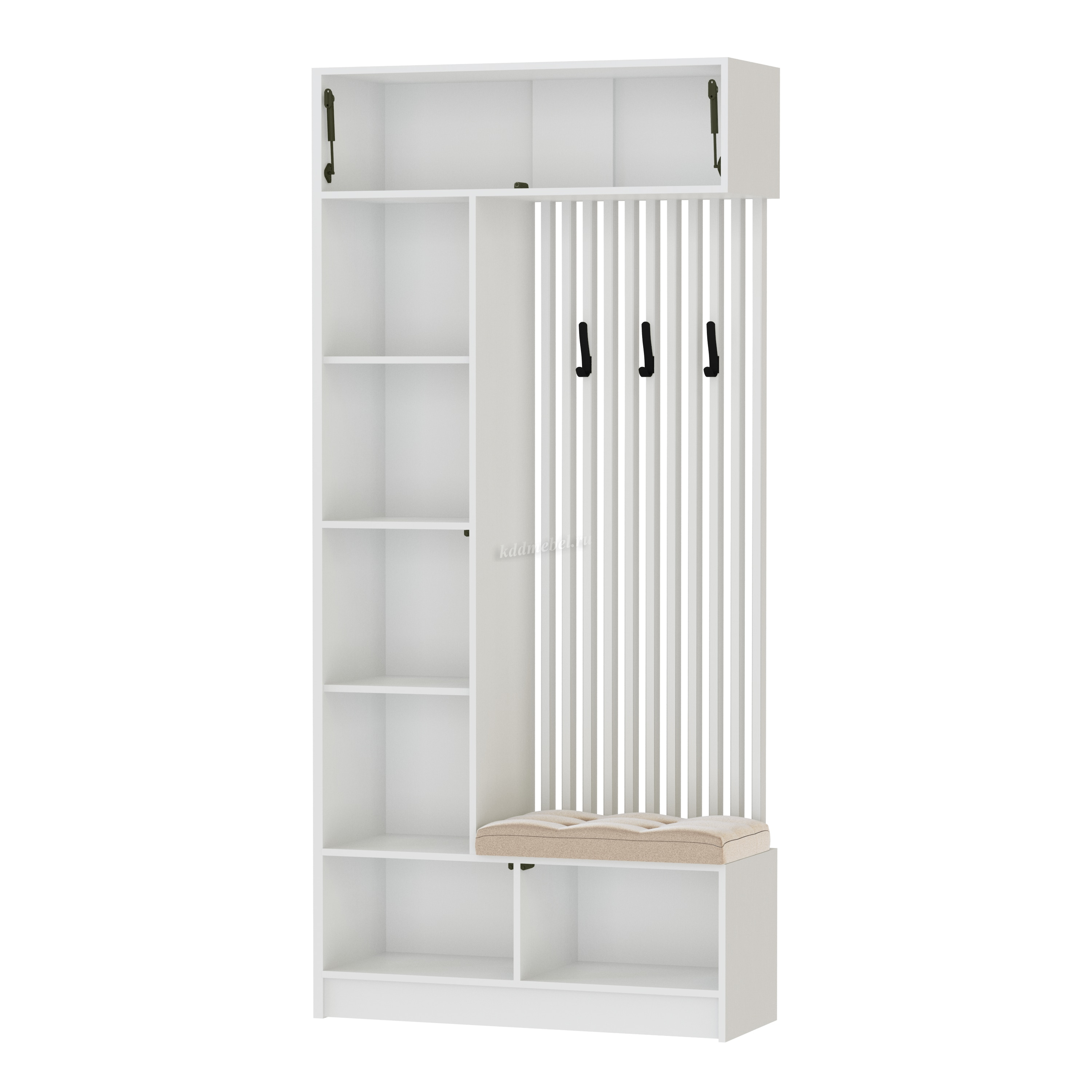 Ручки отсутствуют, крючки пластик, черные, покрытие soft-touch