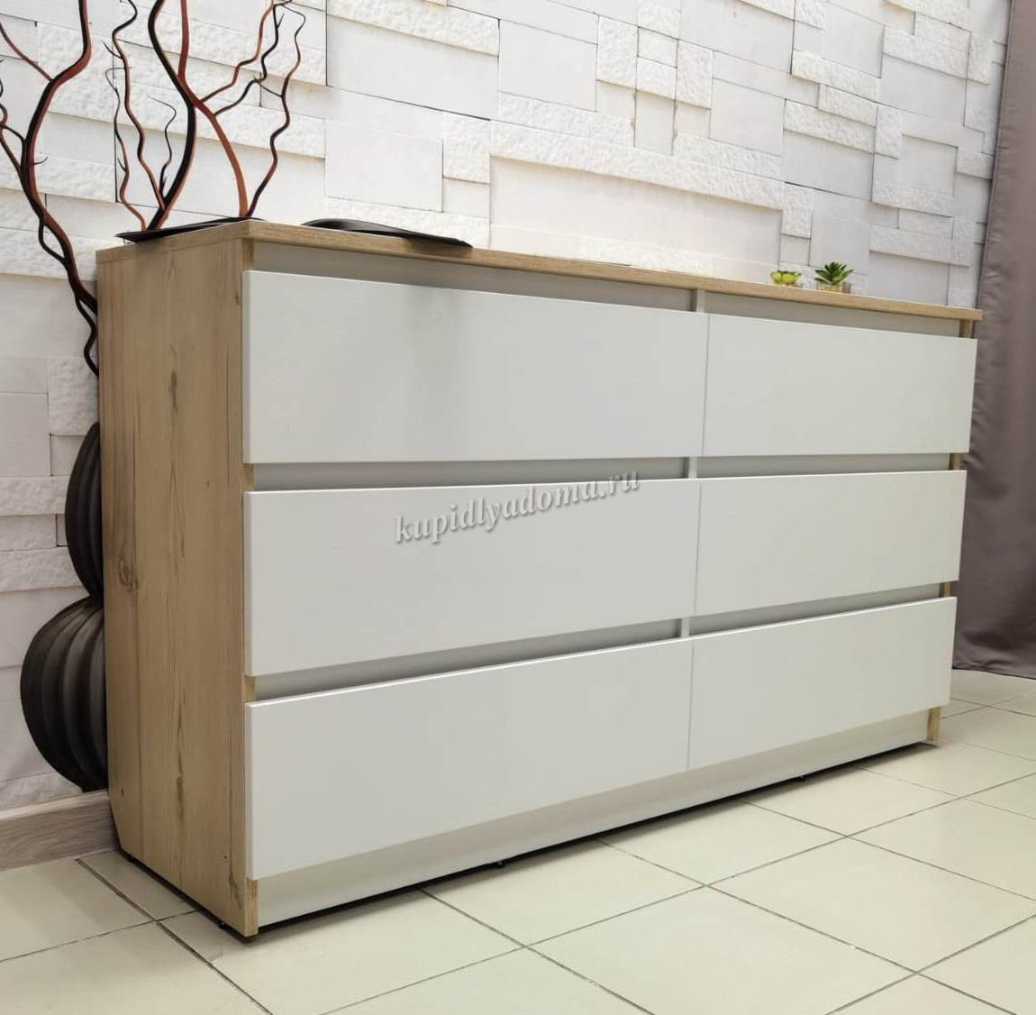 Комод Велес 6 ящиков 1400 (Гаскон пайн/Белый лофт) наличие товара: